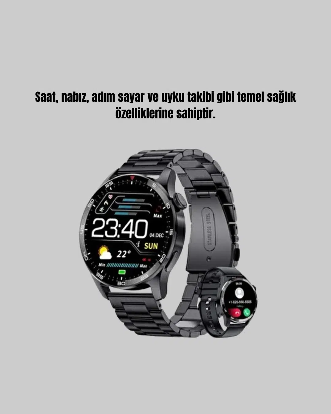 Bu akıllı saat, şıklığı ve işlevselliği bir araya getirerek günlük hayatınızı daha verimli hale getirir. 100–200 mAh kapasiteli bataryası, tam dolumda 24 saate kadar kullanım sağlar. Nabız sensörüyle kalp atış hızınızı anlık takip ederken, adım sayar özelliği günlük aktivitelerinizi kaydeder. Uyku analiz sistemi sayesinde uyku kalitenizi değerlendirir. Bluetooth bağlantısı hızlı ve stabil çalışır; gelen aramalar, mesajlar ve bildirimler doğrudan bileğinizde görüntülenir. Müzik ve arama kontrol özellikleri sayesinde telefonunuzu cebinizden çıkarmadan yönetebilirsiniz. Çoklu spor modu, egzersizlerinizi detaylı şekilde takip etmenizi sağlar. Ergonomik tasarımıyla bileğinizde hafiflik hissi yaratır, dayanıklı malzemesiyle uzun ömürlü kullanım sunar. Hem aktif yaşam tarzına sahip kullanıcılar hem de günlük kullanım için ideal bir seçimdir.