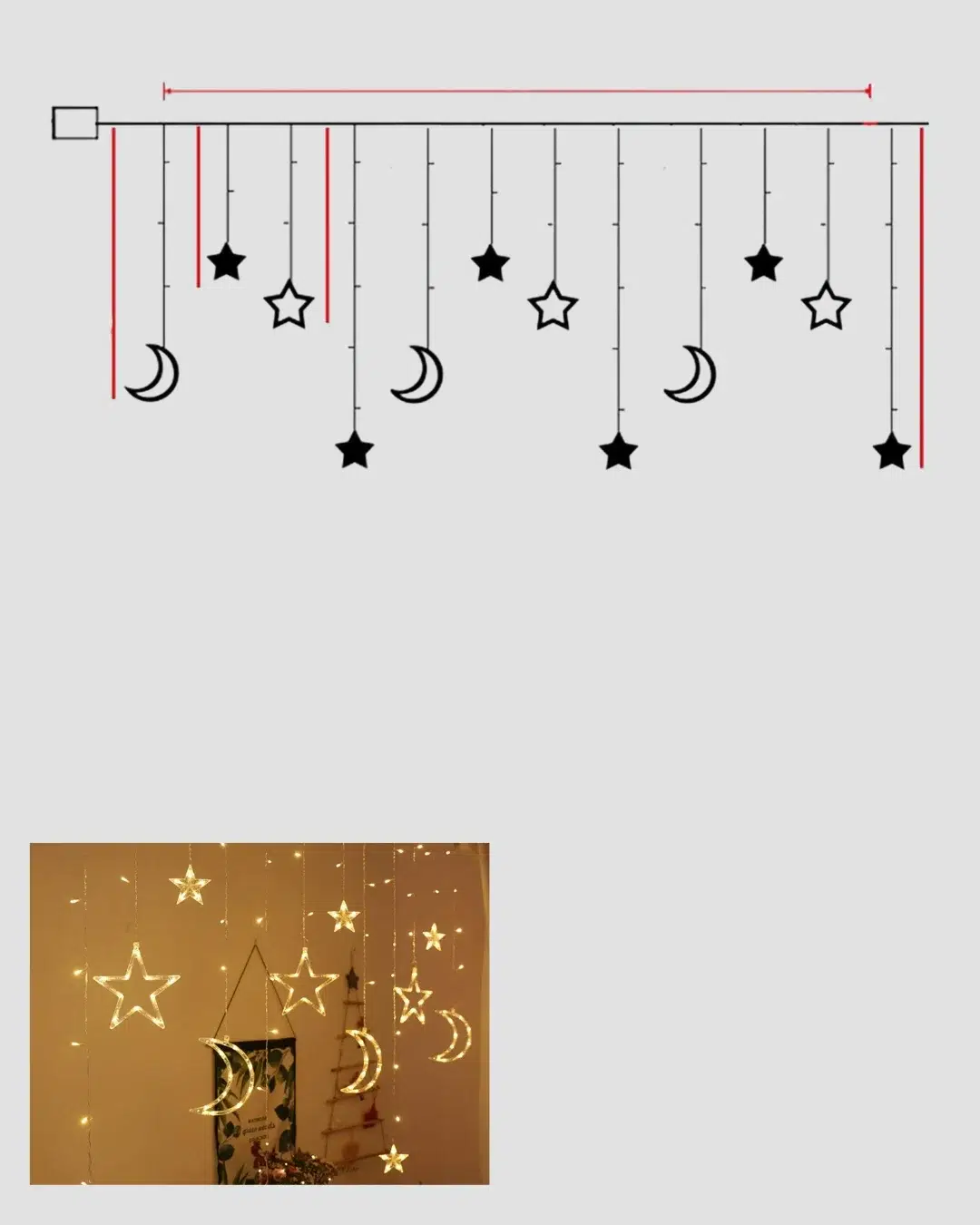 Etiketler126 Led Yıldız Ay Figürlü Perde Işık Romantik Ambiyans