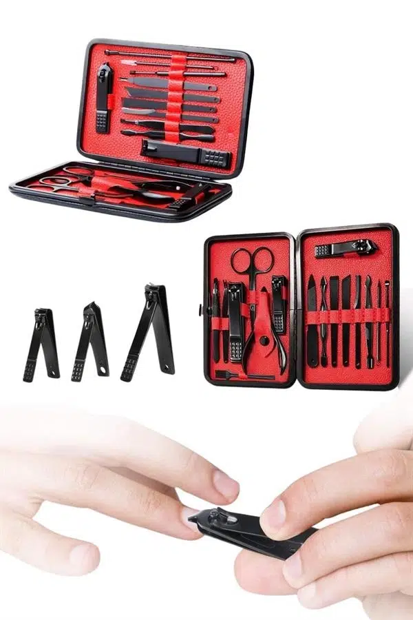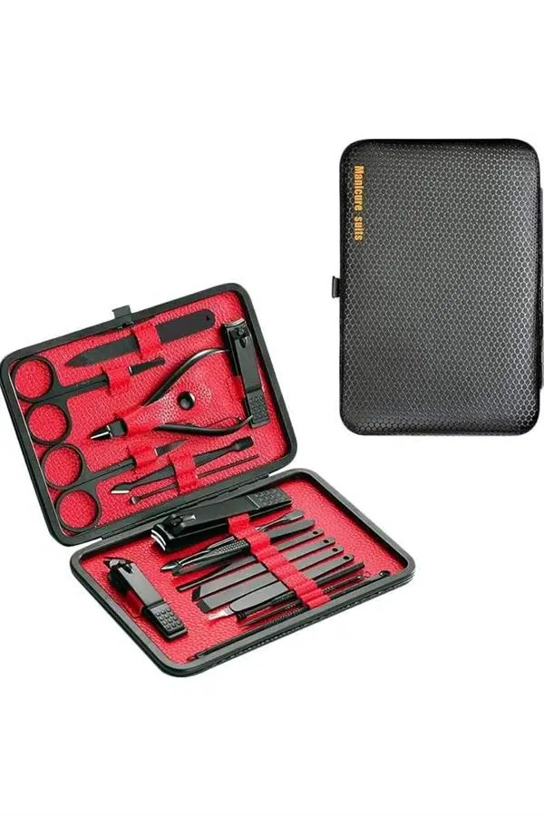 El ve ayak bakımınızı profesyonelce yapmanıza olanak tanıyan 17 parçalık bu özel manikür seti, paslanmaz çelikten üretilmiş dayanıklı ve uzun ömürlü aletlerden oluşur. Güvenli sterilizasyon sağlayan, kolay temizlenen ve korozyona karşı dayanıklı yapısıyla hijyenik bir kullanım sunar. Yeni nesil siyah kaymaz parlatma teknolojisi sayesinde keskinliği artırılmış olup, ergonomik tasarımı ile kavraması ve kullanımı son derece kolaydır. Şık ve sağlam deri kaplama kutusu, tek düğmeyle kolayca açılabilir ve hafif yapısı sayesinde çantanızda taşınabilir. Büyük, küçük ve sivri uçlu tırnak makasları, pedikür bıçakları, törpü, cımbız, kulak temizleme atı, tırnak temizleme çubuğu ve daha birçok farklı at içeren bu set, hem günlük kullanım hem de seyahatleriniz için ideal bir çözümdür. Hem kendiniz hem de sevdikleriniz için harika bir hediye alternatifi olacak bu set, bakım rutininizi tamamlamak için mükemmel bir yardımcıdır.