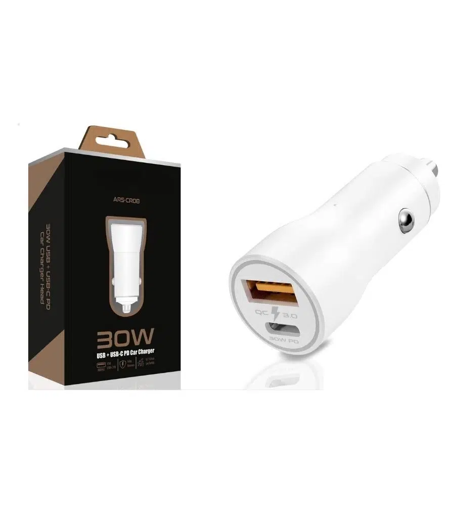 30W USB ve USB-C PD Araba Şarj Cihazı – Hızlı Şarj, iPhone ve Android Uyumlu, Çift Çıkışlı