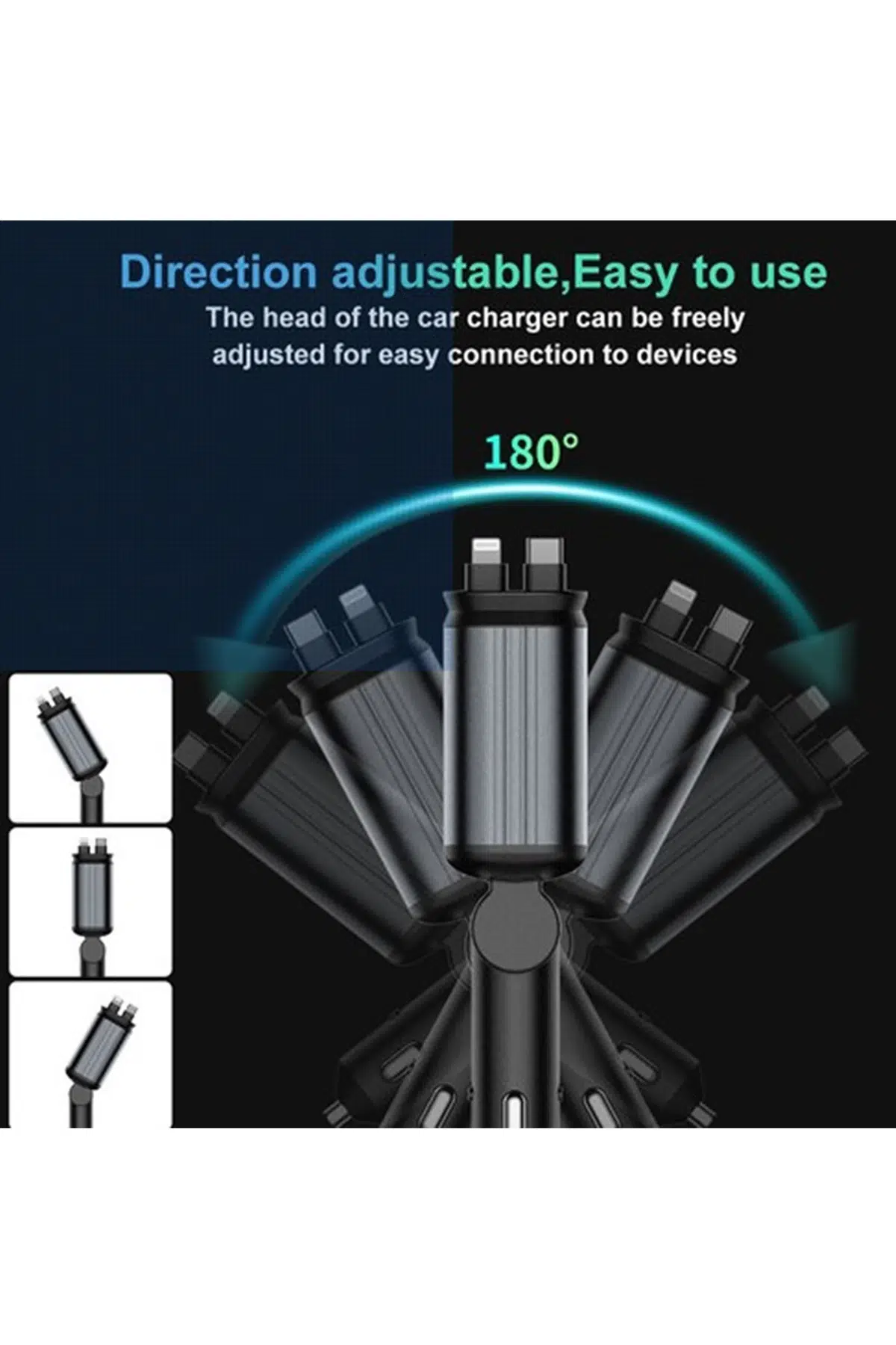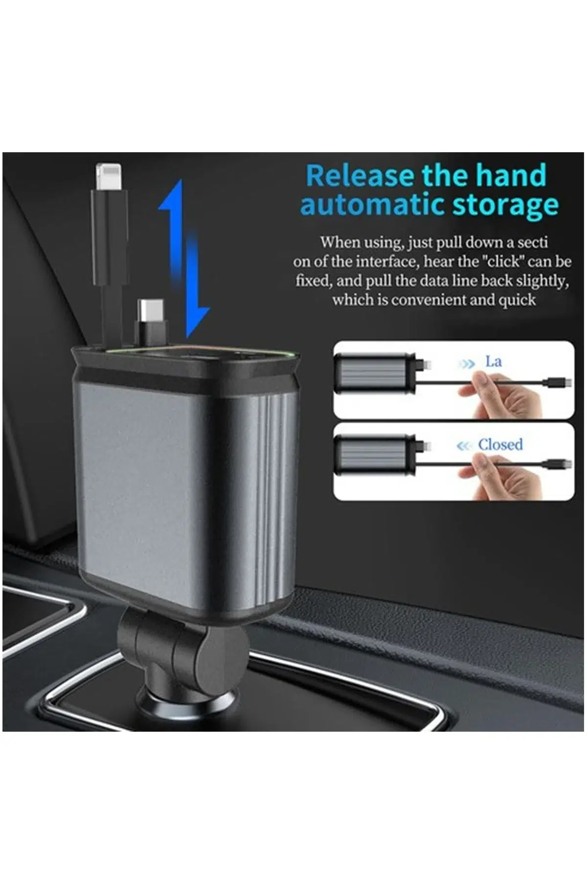 Etiketler4’ü 1 Arada Çift Usb Bağlantı Çakmaklık, Type-c Hızlı Şarjlı 66w,geri Çekilebilir Araç Telefon Şarj Cihazı