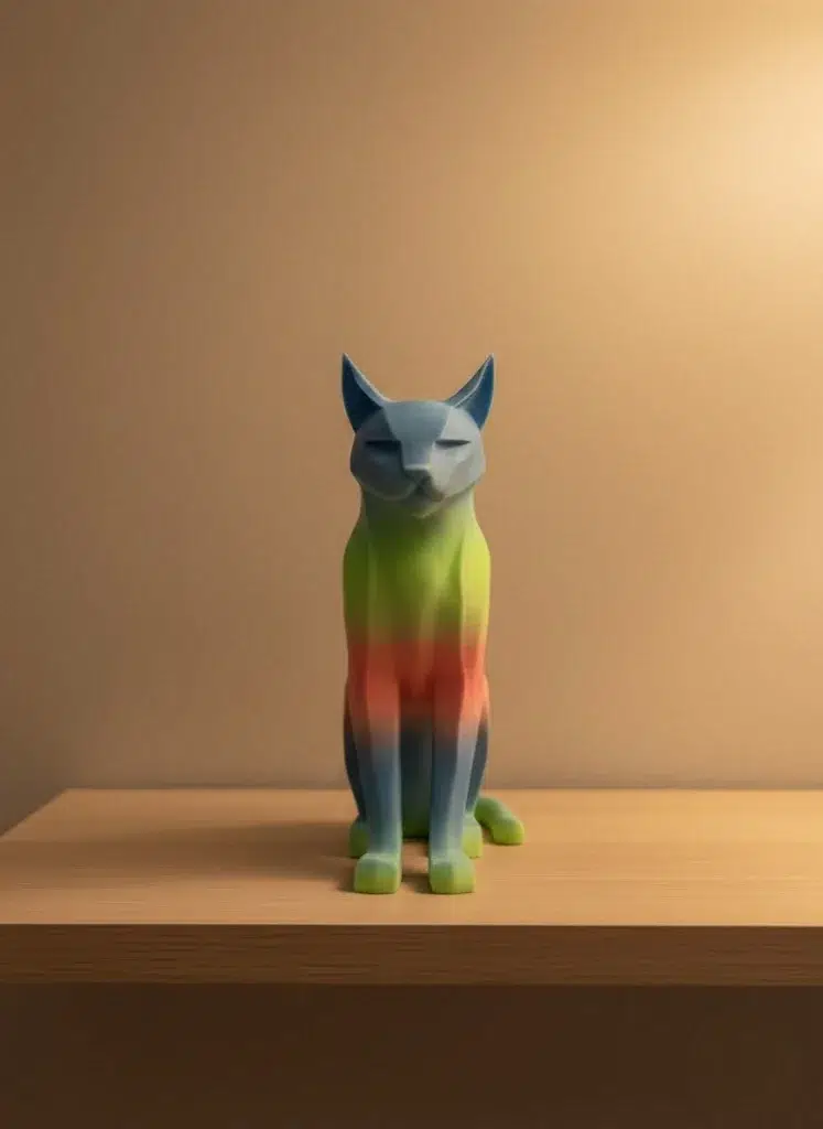 Açık Rainbow Kedi biblo, yumuşak renk geçişleri ve zarif formu ile yaşam alanlarına ferah ve modern bir hava katar. 17×23 cm ölçüsü sayesinde raf, masa, konsol veya TV ünitesi üzerinde dengeli ve es bir görünüm sunar. Açık tonlu rainbow renkler özellikle aydınlık ve loş ortamlarda doğal bir uyum sağlar. Minimal ve modern dekorasyon tarzını tamamlayan bu figür, salon ve oturma odaları için şık bir dekoratif tamamlayıcıdır.