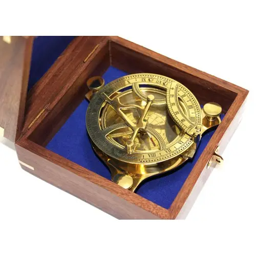 EtiketlerAhşap Kutulu El Yapımı Pirinç Güneş Saati Ve Pusula