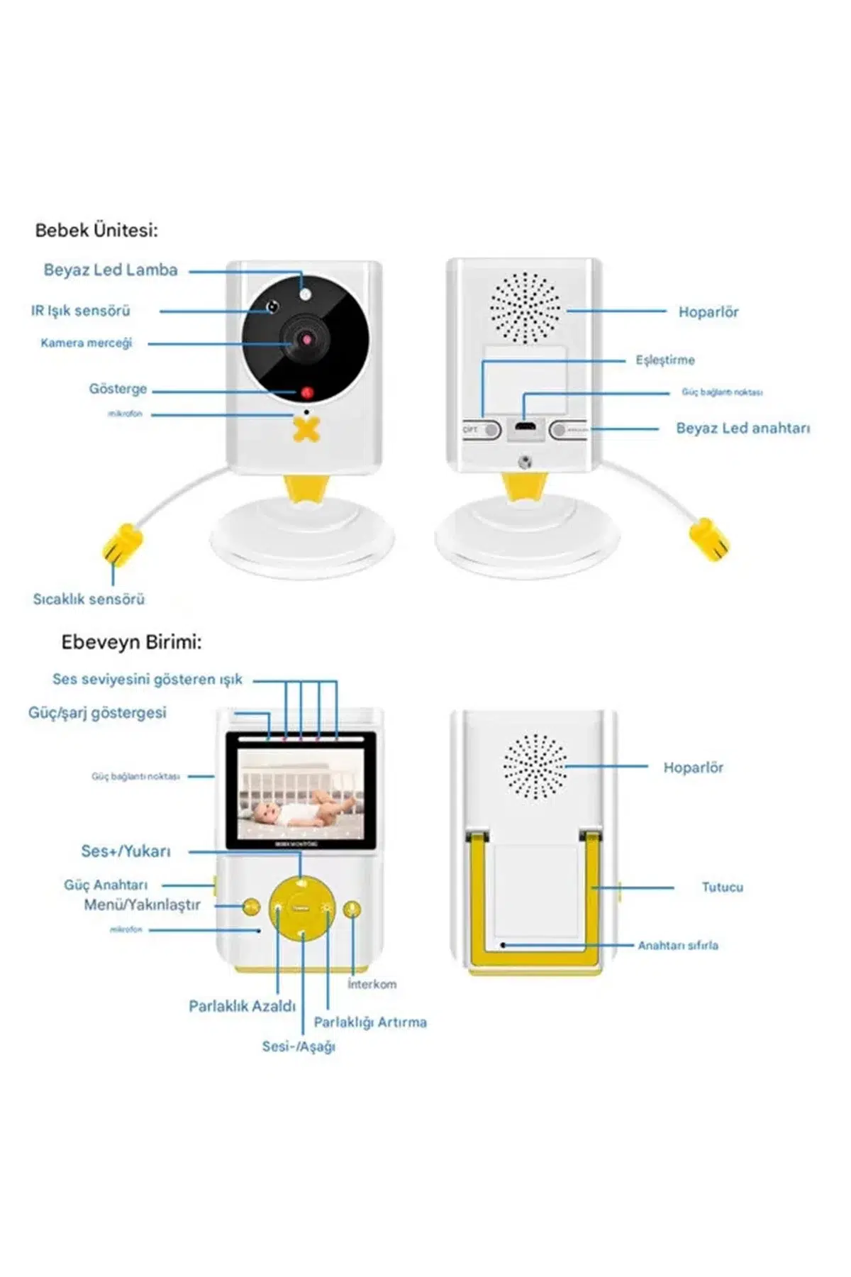 2 Yönlü Ses: İki yönlü konuşma iletişimini destekleyin, bebeğinizin ağlamasını duyduğunuzda,