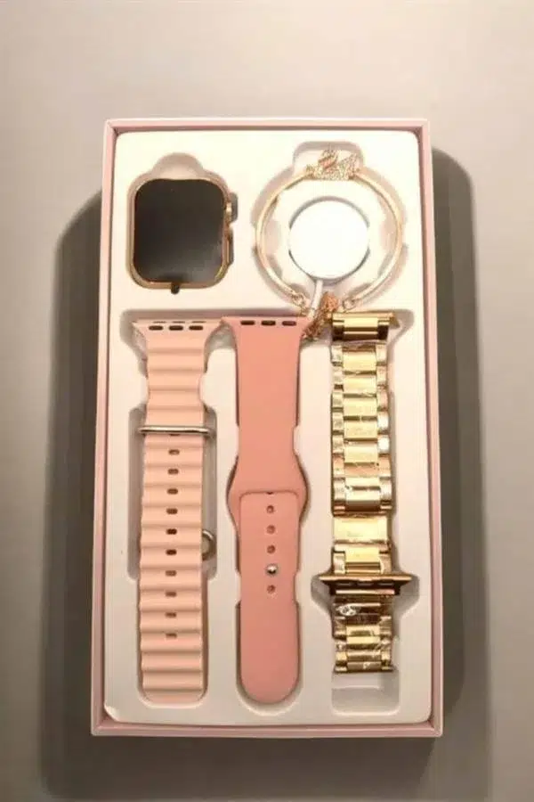 Şıklığı ve işlevselliği bir araya getiren bu akıllı saat, aksesuar severler için üç farklı kordon seçeneği ve zarif bir flamingo Bileklik ve yüzük hediyesiyle birlikte gelir. Kordon seçenekleri arasında çelik metal, ocean tasarım ve silikon malzeme yer alır; böylece saatinizi günlük tarzınıza veya etkinliğinize göre uyarlayabilirsiniz. Hediye kolye, şık bir dokunuş ekler ve bu ürünü sadece teknolojik bir cihaz değil, aynı zamanda zarif bir aksesuar haline getirir. Saatin kapsamlı özellikleri ve kullanıcıya sunduğu hediyeler, hem fonksiyonel hem de es bir deneyim sunar.