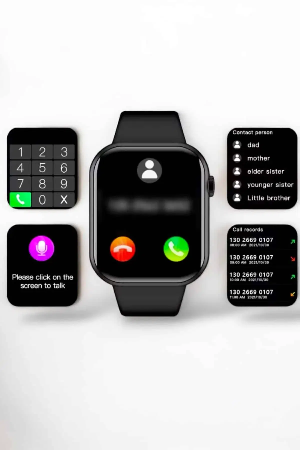 EtiketlerAkıllı Saat Arama Cevaplayan Dokunmatik Ekran Bleutooth Bağlantılı