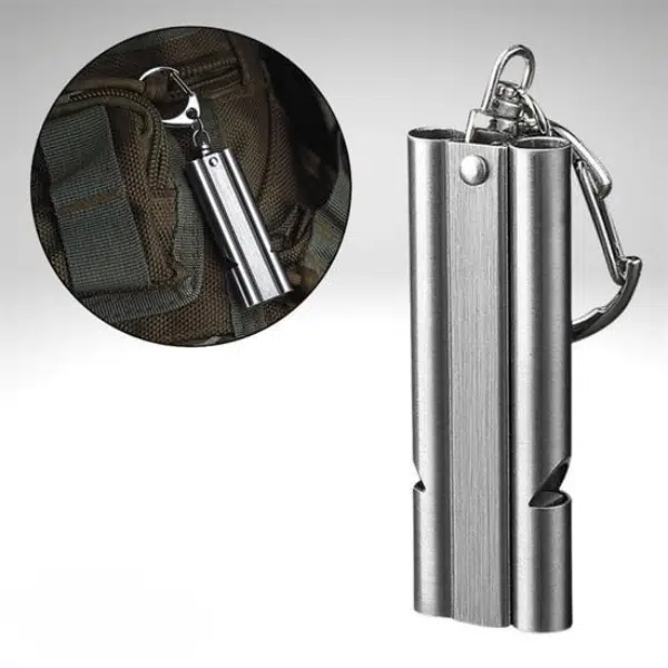 ALÜMİNYUM SOS DÜDÜK ANAHTARLIKÜrün Özellikleri Yüksek ses gücü ve dayanıklı yapısıyla Alüminyum SOS Düdük Anahtarlık, doğa yürüyüşlerinden kamp aktivitelerine, spor etkinliklerinden acil durumlara kadar her ortamda güvenle kullanılabilir. Kompakt boyutu sayesinde anahtarlık olarak kolayca taşınabilir ve her an ulaşılabilir durumda olur. Paslanmaz çelik ve alüminyum alaşım malzeme yapısı, uzun ömürlü kullanım sunarken suya ve zorlu hava koşullarına karşı da dayanıklıdır.Acil durumlarda 150 desibele kadar ses çıkarabilen bu düdük, yardım çağrısı yapmak için mükemmeldir. Ayrıca evcil hayvan eğitimi, açık hava sporları, kamp, yürüyüş ve dağcılık gibi aktivitelerde de rahatlıkla kullanılabilir. Pürüzsüz yüzeyi ve ergonomik tasarımı sayesinde elde rahat tutuş sağlar ve kolay üfleme imkânı sunar.Hafif tasarımı (10 gram) sayesinde cebinizde, çantanızda veya kemerinizde fark edilmeden taşınabilir. Şık metalik rengiyle hem işlevsel hem de estetik bir görünüme sahiptir.Paket İçeriği1 adet Alüminyum SOS Düdük Anahtarlık