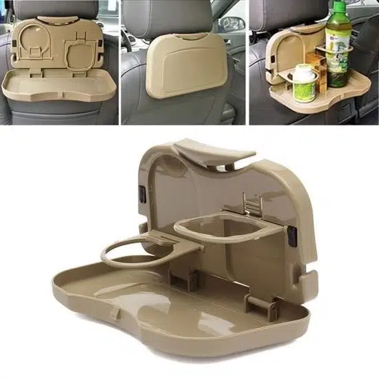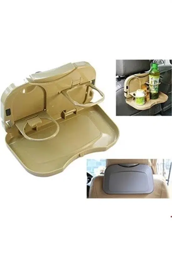 EtiketlerAraç İçi Koltuk Arkası Katlanabilir Bardak Tutuculu Bej Tepsi