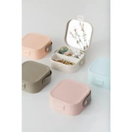 AYNALI MAKYAJ KUTUSU ÇANTA BOYÜrün ÖzellikleriAynalı Makyaj Kutusu, çanta boyu tasarımı ile taşınabilir bir makyaj ve takı düzenleyicidir. Kompakt yapısı sayesinde kolayca çantada taşınabilir ve seyahatlerde kullanılmaya uygundur. Kapağında bulunan ayna, makyaj yaparken veya aksesuar değiştirirken pratiklik sağlar. İç kısmındaki bölmeler sayesinde yüzük, küpe, kolye ve diğer takılar düzenli bir şekilde saklanabilir. Yumuşak renk tonları ve deri detaylı taşıma sapı ile estetik bir görünüm sunar. Plastik ve suni deri malzeme kullanılarak üretilmiş olup, uzun ömürlü bir kullanım sunar. Güvenli kapanma mekanizması sayesinde içindeki eşyalar dağılmadan saklanabilir.Paket İçeriği1 Adet Aynalı Makyaj Kutusu Çanta Boy