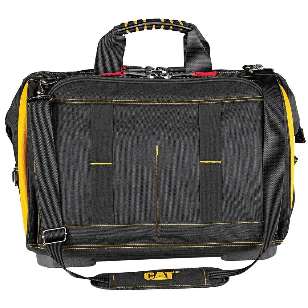 CAT 18'' geniş ağızlı, çok bölmeli ağır hizmet tipi alet takım çantası maksimum alet taşıma kapasitesi için toplam 56 cep ve geniş düz ve düzenli bir iç alana sahiptir.