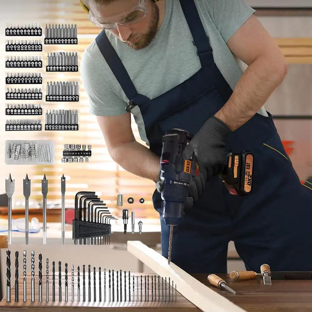 EtiketlerCAT DX12SET 18Volt/2.0Ah Li-ion Çift Akülü Kömürsüz Profesyonel Darbeli Matkap+DA01903 201 Parça Delme/Vidalama Uç Seti
