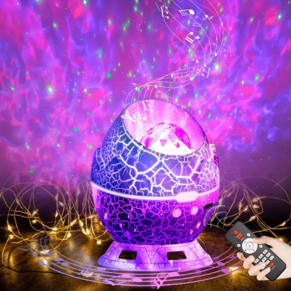 Çatlak Dinozor Yumurtası Tasarımlı Projektörlü Gece Lambası Bluetooth Özellikli