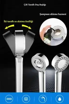 EtiketlerÇift Taraflı Yüksek Basınçlı Su Akıtan Şampuan Hazneli Tasarruflu Duş Başlığı