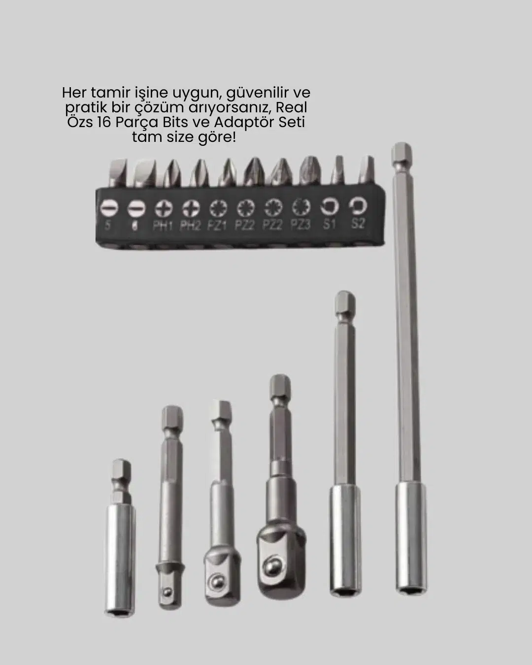 Bu 16 Parça Bits ve Adaptör Seti, ev içi ve profesyonel kullanım için geliştirilmiş yüksek performanslı bir vidalama setidir. Her parçası özenle seçilmiş bu set, çok farklı vidalama ihtiyaçlarına çözüm sunar. Geniş uç yapısı sayesinde elektronik eşyalar, küçük ev aletleri, bilgisayar ve telefon kasaları, oyuncaklar, mobilyalar ve daha pek çok alanda kullanılabilir. Setin içindeki her uç, zorlu koşullara dayanacak şekilde üretilmiştir ve uzun ömürlü kullanım sunar.Setin adaptörü, elektrikli vidalama makineleriyle uyumlu çalışarak kullanıcıya büyük kolaylık sağlar. Manyetik uç sistemi sayesinde vidalar kullanım sırasında düşmez; bu özellik özellikle hassas ve küçük vidalarla çalışırken büyük avantaj sağlar. Uçların yüzeyleri aşınmaya karşı dayanıklıdır ve uzun süreli tamirlerde bile performansını kaybetmez.Kutu tasarımı kullanıcı dostudur; tüm parçalar düzenli bir şekilde yerleştirilmiş olup kolay ulaşım sağlar. Hafif yapısı sayesinde her yere taşınabilir, böylece acil durumlarda hızlıca müdahale etme imkânı sunar. Evde kendi tamir işlerini yapmak isteyenler için vazgeçilmez bir yardımcı olurken, profesyonellerin ekipman çantasında da mutlaka bulunması gereken bir üründür.Bu setin sağladığı pratiklik ve fonksiyonellik, işlerinizi hem hızlı hem de temiz şekilde tamamlamanıza olanak tanır. Dayanıklı yapısı ve geniş uç seçeneği sayesinde yıllarca güvenle kullanılabilir. Hem pratik hem de ekonomik bir çözüm sunan bu set, tamir işlerini kolaylaştırmak isteyen herkes için ideal bir seçimdir. 16 Parça Bits ve Adaptör Seti, tamir dünyasında ihtiyaç duyulan tüm fonksiyonları tek bir pakette birleştirir.