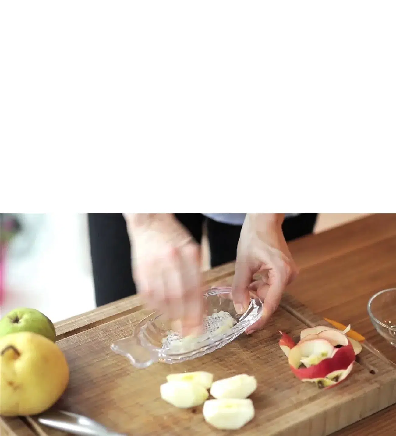 • Besinlerin ve meyvelerin besin değerlerini kaybetmeden sağlıklı bir şekilde hazırlayabilmeniz için cam rende ile rendelenip ayıklanması gerekmektedir.