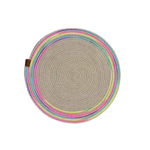 DecoHandy 39cm Neon Renkli Şeritli Jüt Örme Supla Amerikan Servis
