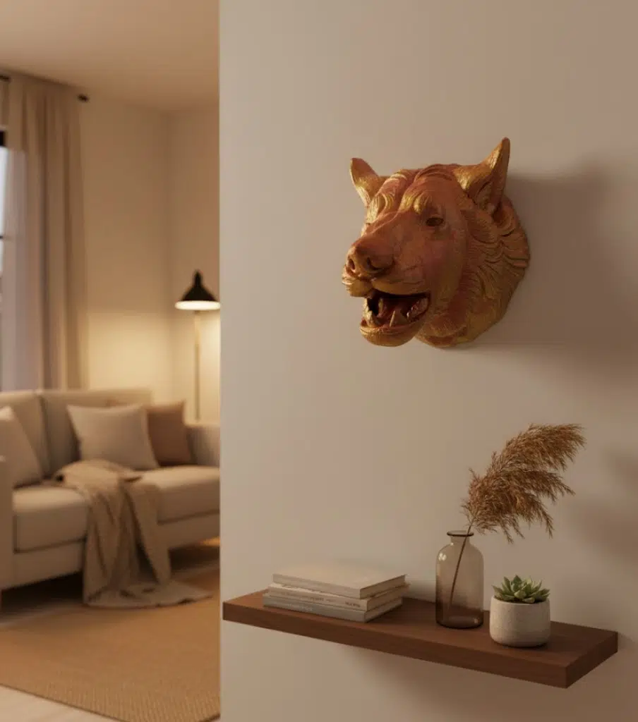 EtiketlerDekoratif Altın Gold Kurt Duvar Heykeli Asılabilir Hediyelik 25x19 Cm