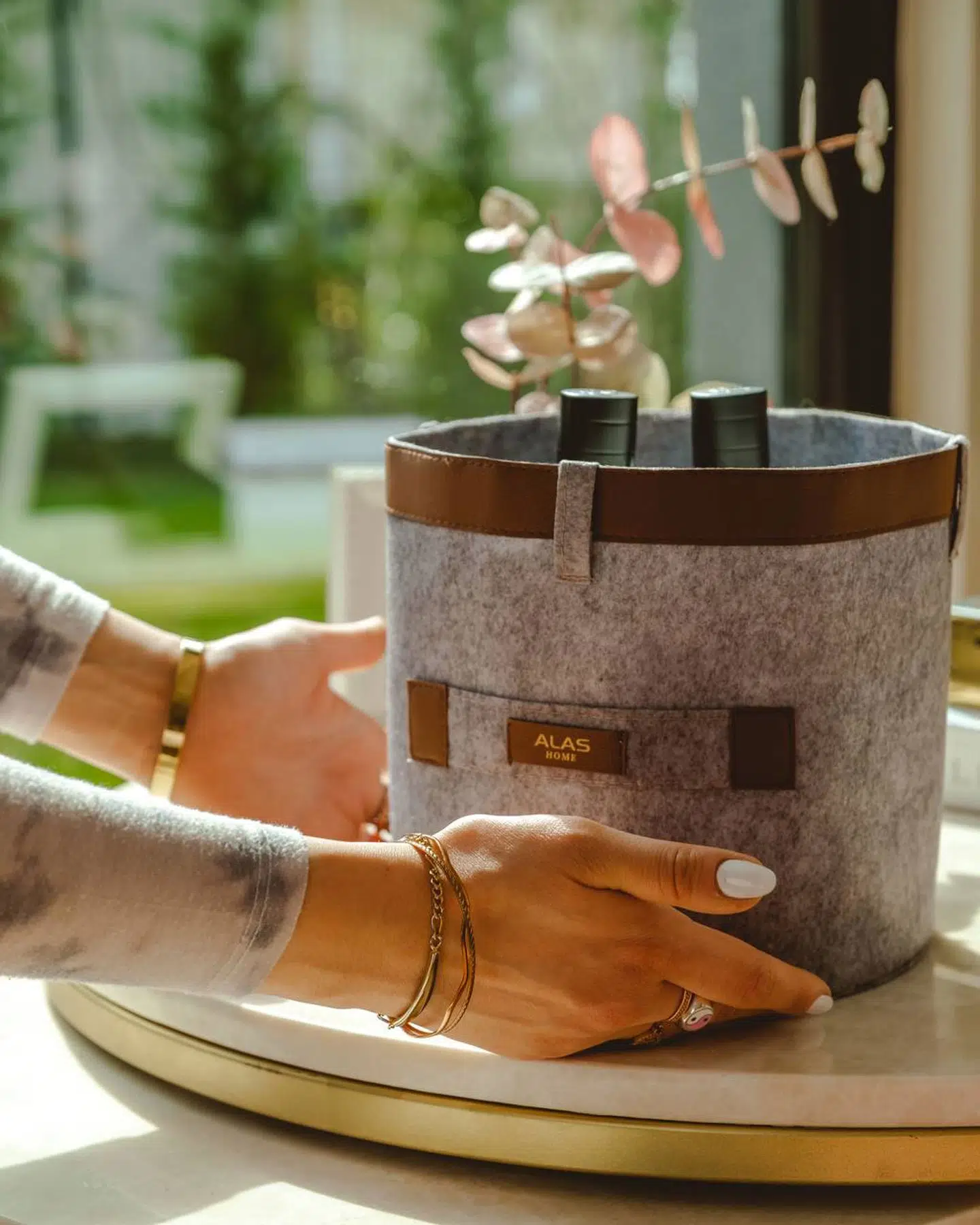 EtiketlerDeri Şeritli Yuvarlak Çok Amaçlı Düzenleyici Organizer Kutu Keçe Sepet (mini) 03822