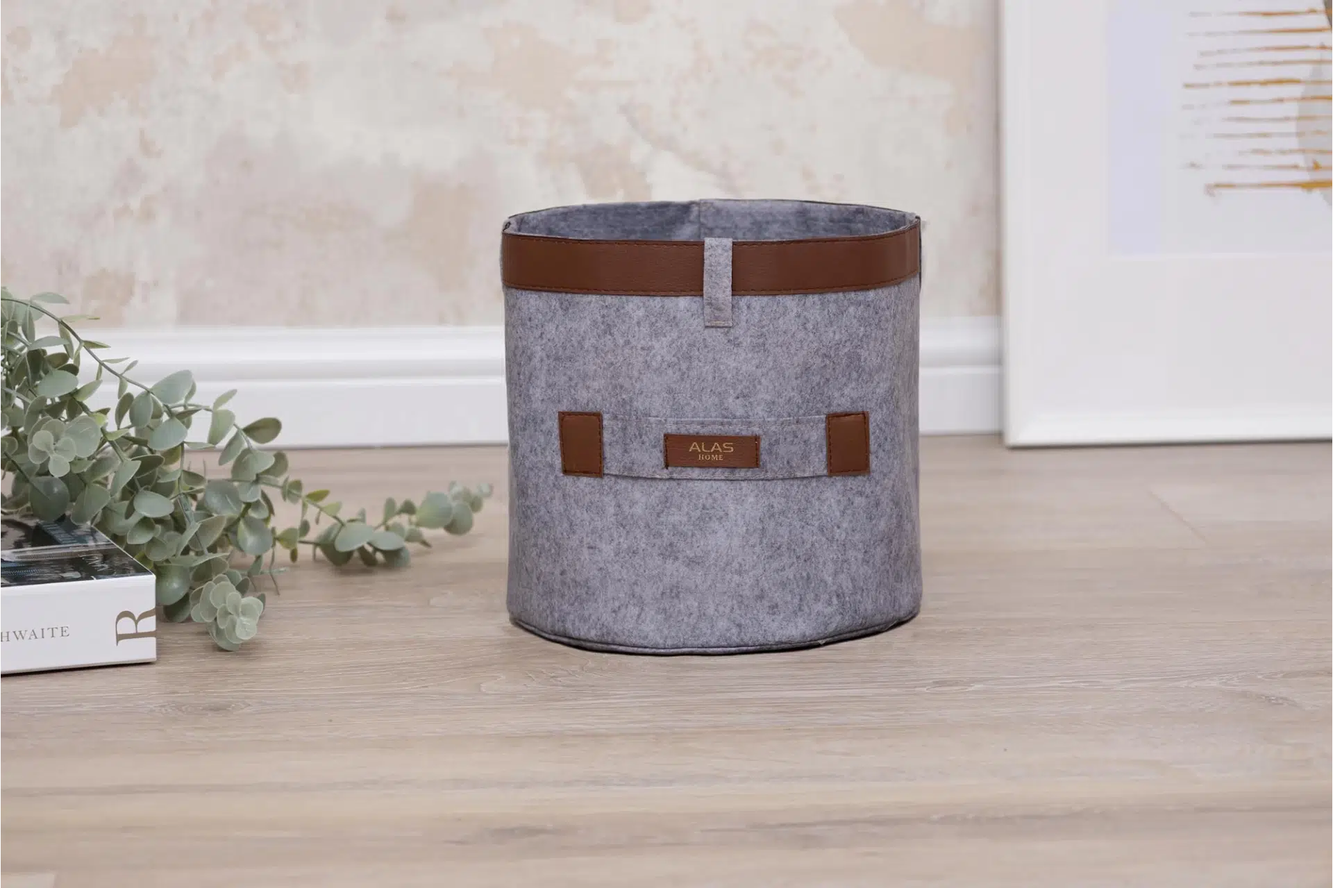 Deri Şeritli Yuvarlak Çok Amaçlı Düzenleyici Organizer Kutu Keçe Sepet (mini) 03822