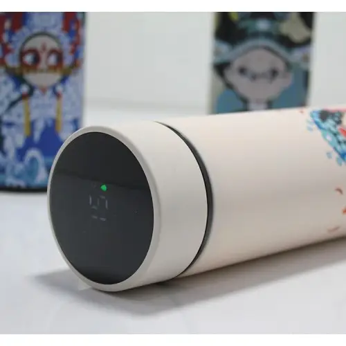 DİJİTAL GÖSTERGELİ PASLANMAZ ÇELİK TERMOS (500 ML)Ürün ÖzellikleriDijital Göstergeli Paslanmaz Çelik Termos, modern ve şık tasarımıyla sıcak ve soğuk içeceklerinizi uzun süre ideal sıcaklıkta tutan pratik bir üründür. 500 ml kapasitesiyle günlük kullanıma uygundur ve ergonomik yapısıyla rahat taşınabilir. Üzerindeki dijital sıcaklık göstergesi sayesinde içerisindeki sıvının anlık sıcaklık değerini kolayca takip edebilirsiniz. Dayanıklı paslanmaz çelik gövdesi sayesinde uzun ömürlü kullanım sunarken, farklı estetik tasarım baskılarıyla kişisel tarzınızı yansıtmanıza olanak tanır. Çift katmanlı vakum yalıtımı sayesinde içeceklerinizin ısı kaybını minimuma indirir.Paket İçeriği1 adet Dijital Göstergeli Paslanmaz Çelik Termos