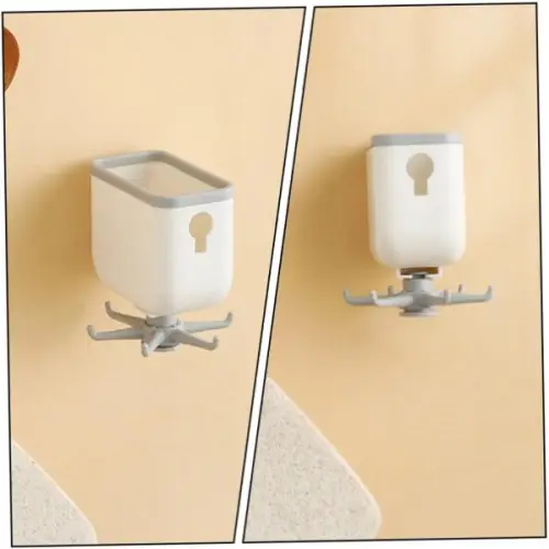DÖNER ASKILI ORGANİZERÜrün Özellikleri Döner Askılı Organizer, kullanışlı yapısıyla her alanda işinizi kolaylaştırır. Üst kısmında sünger, tel ya da küçük temizlik ürünleri gibi eşyaları koymak için uygun bir hazne bulunur. Alt kısmında ise 360° dönebilen askı kancaları yer alır. Döner mekanizma, 4 adet askı ile bez, fırça, eldiven, kepçe gibi eşyaların düzenli bir şekilde asılmasını sağlar. Vidalama gerektirmez ve güçlü yapışkanlı yüzeyi sayesinde düz yüzeylere kolayca monte edilebilir. Dayanıklı, nemden etkilenmeyen kaliteli plastikten üretilmiştir. Minimal tasarımı ile banyo, mutfak ve diğer alanlar için uyumlu bir dekorasyon unsuru oluşturur. Mutfak, banyo, çamaşır odası, temizlik dolabı gibi çeşitli alanlarda kullanıma uygundur. Paket İçeriği 1 Adet Döner Askılı Organizer