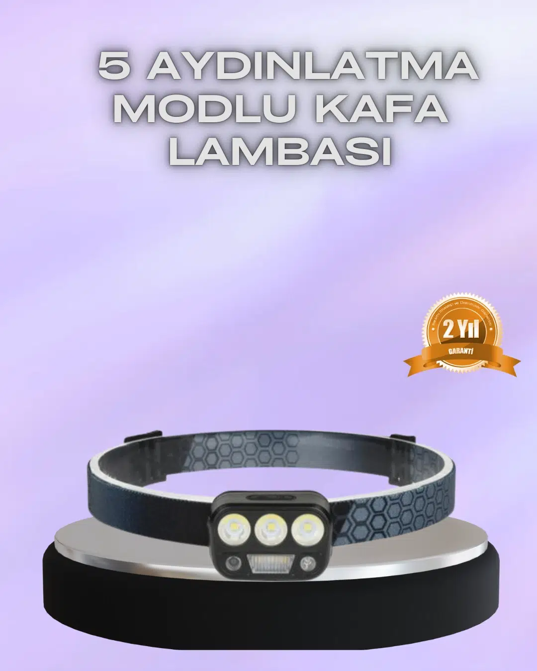 El Hareket Sensörlü Led Kafa Feneri 5 Mod Ayarlanabilir