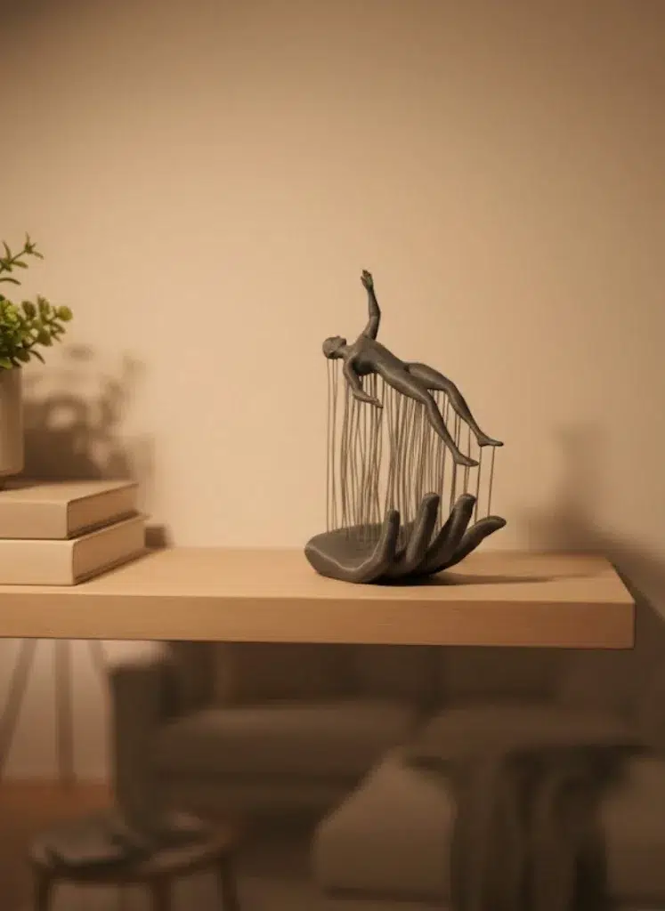 El İnsan Figürü Gri, modern ve sanatsal formu ile yaşam alanlarınıza es bir dokunuş kazandırır. El formu üzerinde yükselen insan figürü, soyut ve anlam yüklü tasarımıyla dikkat çeker. Salon raflarında, kitaplık üzerinde ya da konsol dekorasyonunda kullanıma uygundur. Gri rengi sayesinde hem açık hem koyu dekorasyon stilleriyle kolayca uyum sağlar. Minimal ve modern ev dekorasyonu sevenler için ideal bir biblodur.