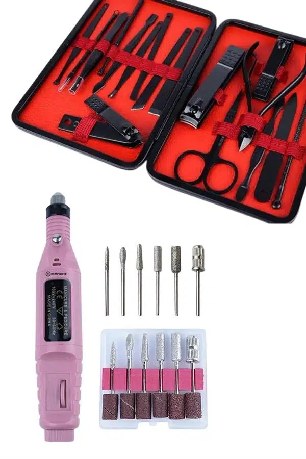 Elektrikli Manikür Pedikür Seti İkili Set 17 Parça Tırnak Bakımı Nasır Temizleme Tırnak Şekillendirme