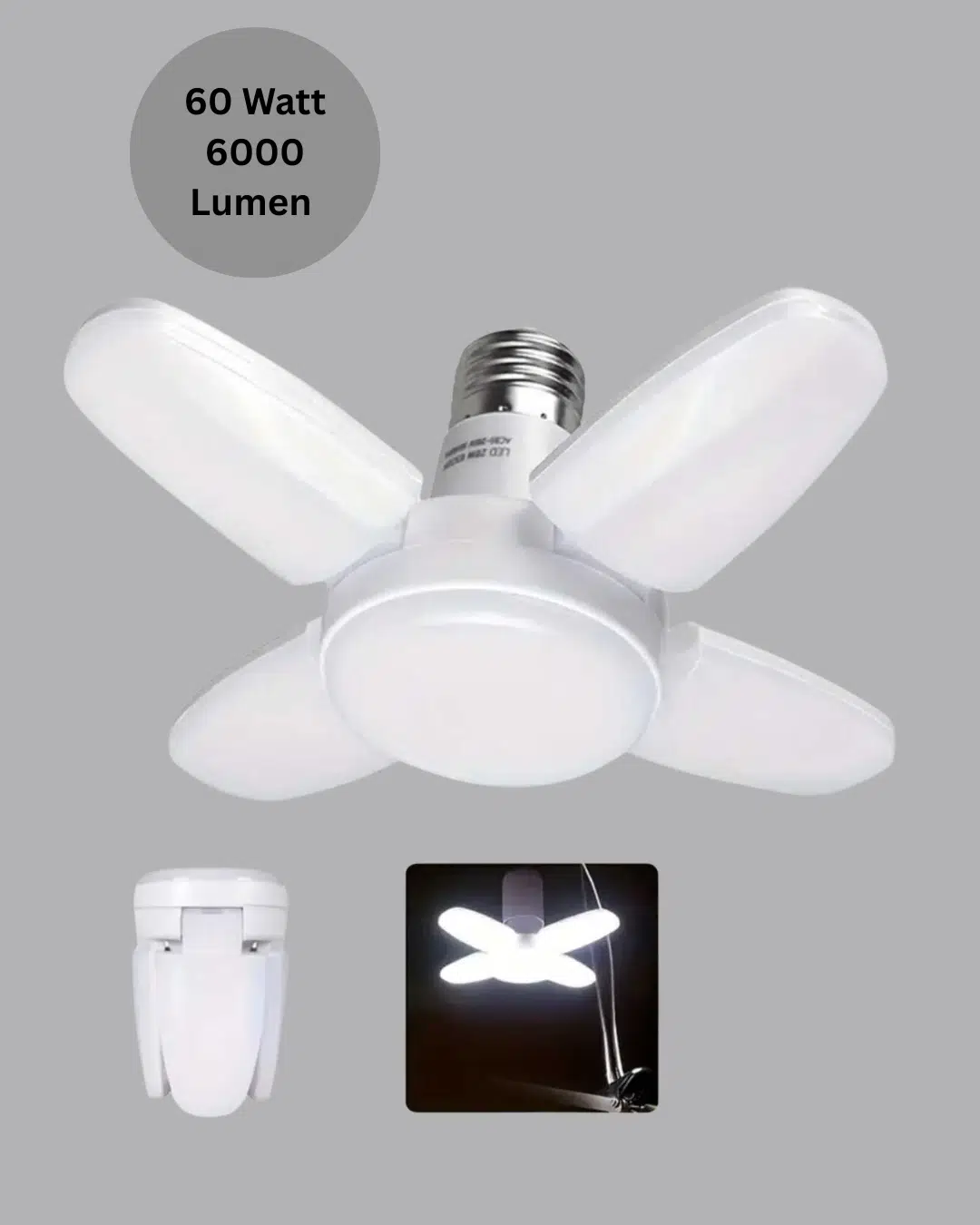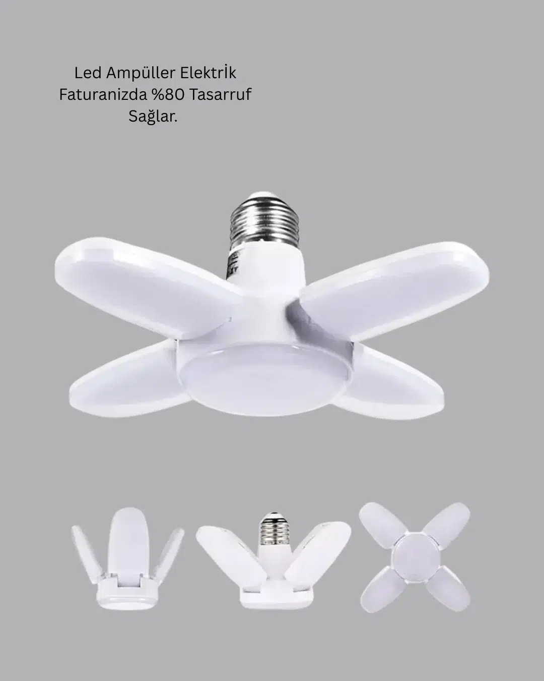 4 kollu LED pervane ampül, geniş alan aydınlatmasında yüksek verimlilik sunan yenilikçi bir üründür. 60 Watt gücü ve 6000 lumen ışık kapasitesi ile tek başına güçlü bir aydınlatma sağlar. Beyaz ışık rengi sayesinde çalışma alanlarında ideal görüş oluşturur.Enerji tasarrufu sağlayan LED yapısı, çevreye duyarlı ve ekonomik bir kullanım sunar. Katlanabilir kollar, ışığın yönünü ayarlama imkânı tanır. Uzun ömürlü LED çipleri sayesinde bakım gerektirmez.Garaj, depo, atölye ve geniş yaşam alanları için ideal bir çözümdür.