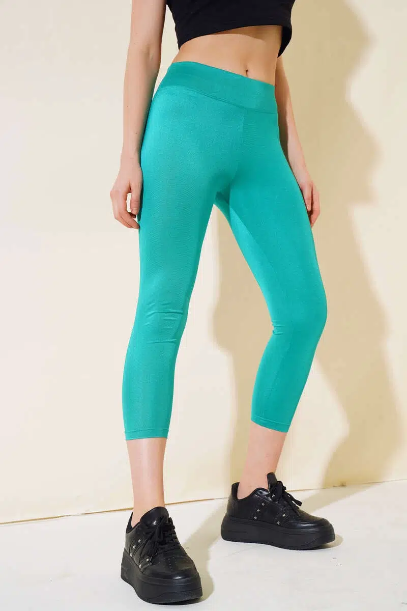 Esnek Yüksek Bel Yeşil Uzun Parlak Disco Tayt
