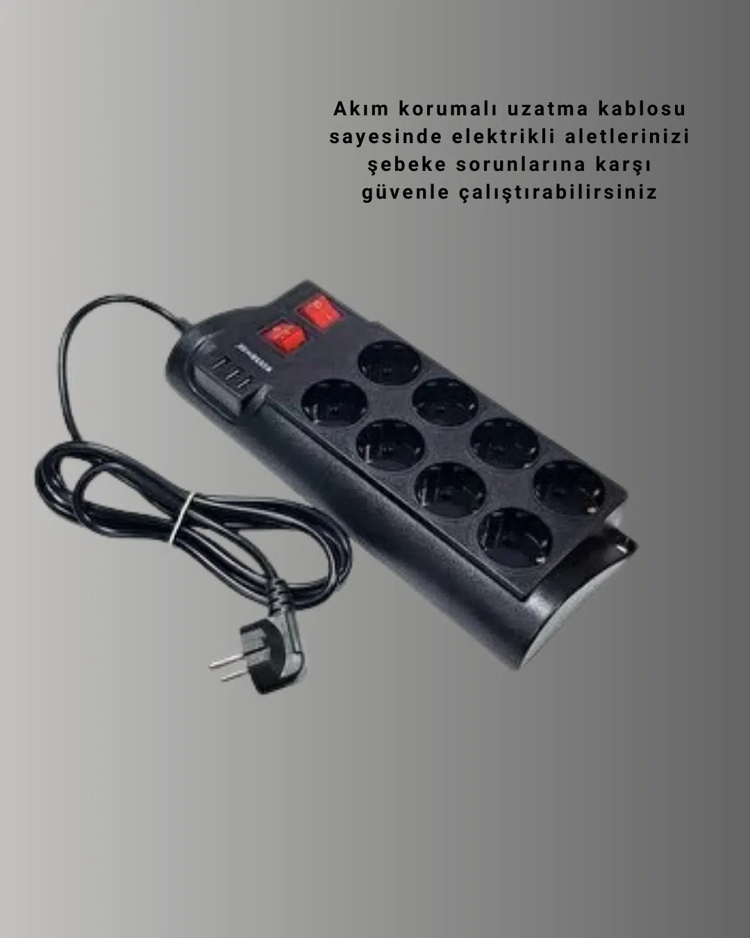 EtiketlerGüçlü Termal Korumalı 8 Priz + 3 Usb Çoklu Uzatma Kablosu 2m