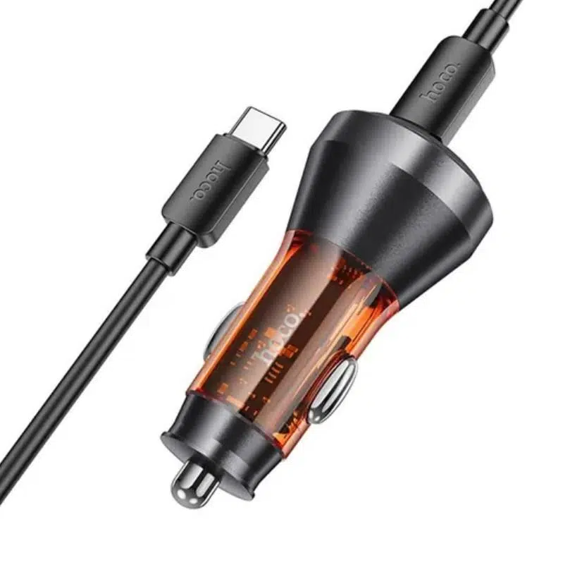 HOCO NZ12B Unimpeded PD48W USB + Type-C Araç Çakmaklı Hızlı Şarj Aleti + Type-C to Type-C Kablo Turuncu