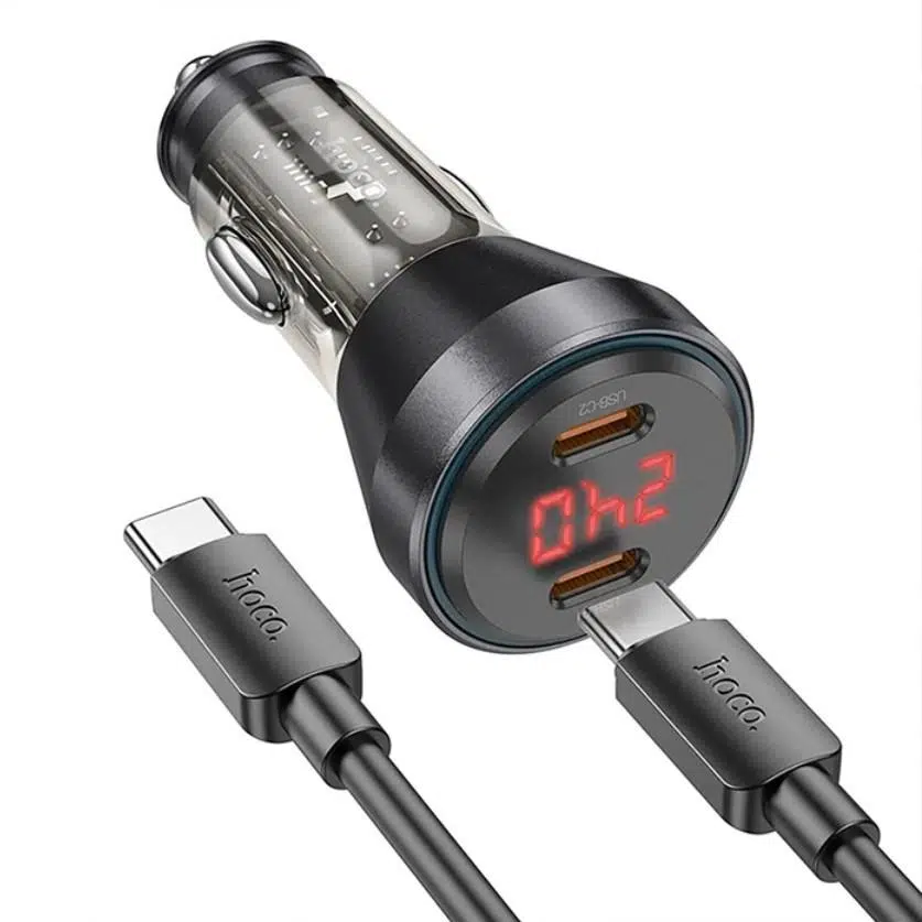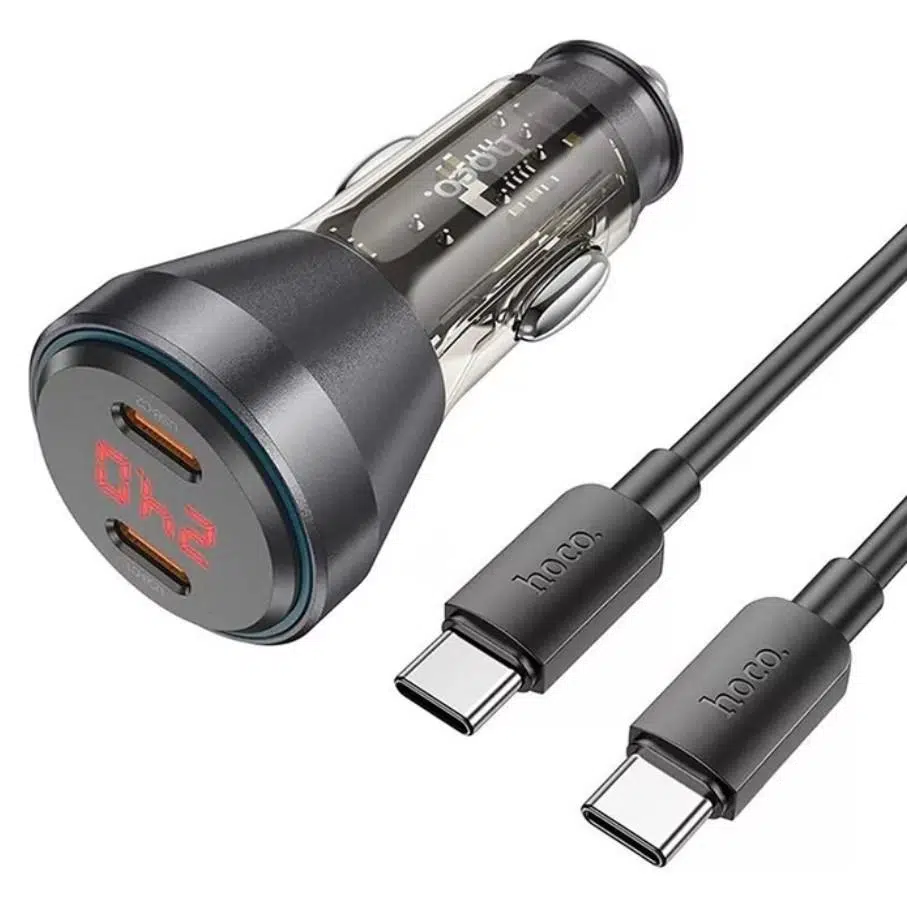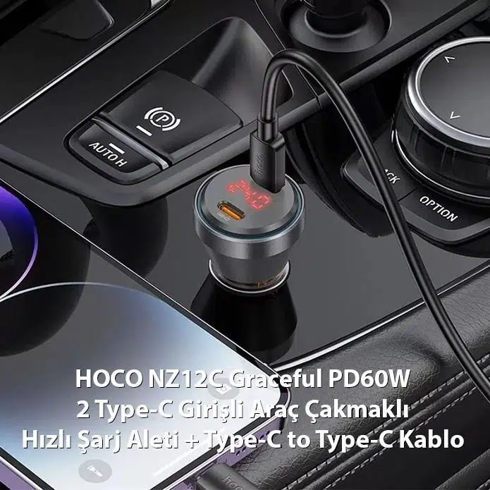 HOCO NZ12C Graceful PD60W 2 Type-C Girişli Araç Çakmaklık Hızlı Şarj Aleti + Type-C to Type-C Kablo