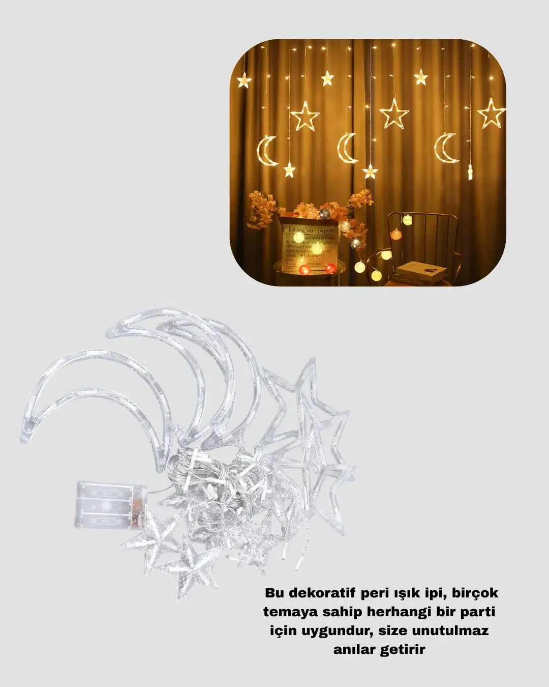 Etiketlerİç Ve Dış Mekan Uyumlu Pilli Yıldız Ay Peri Led Perde