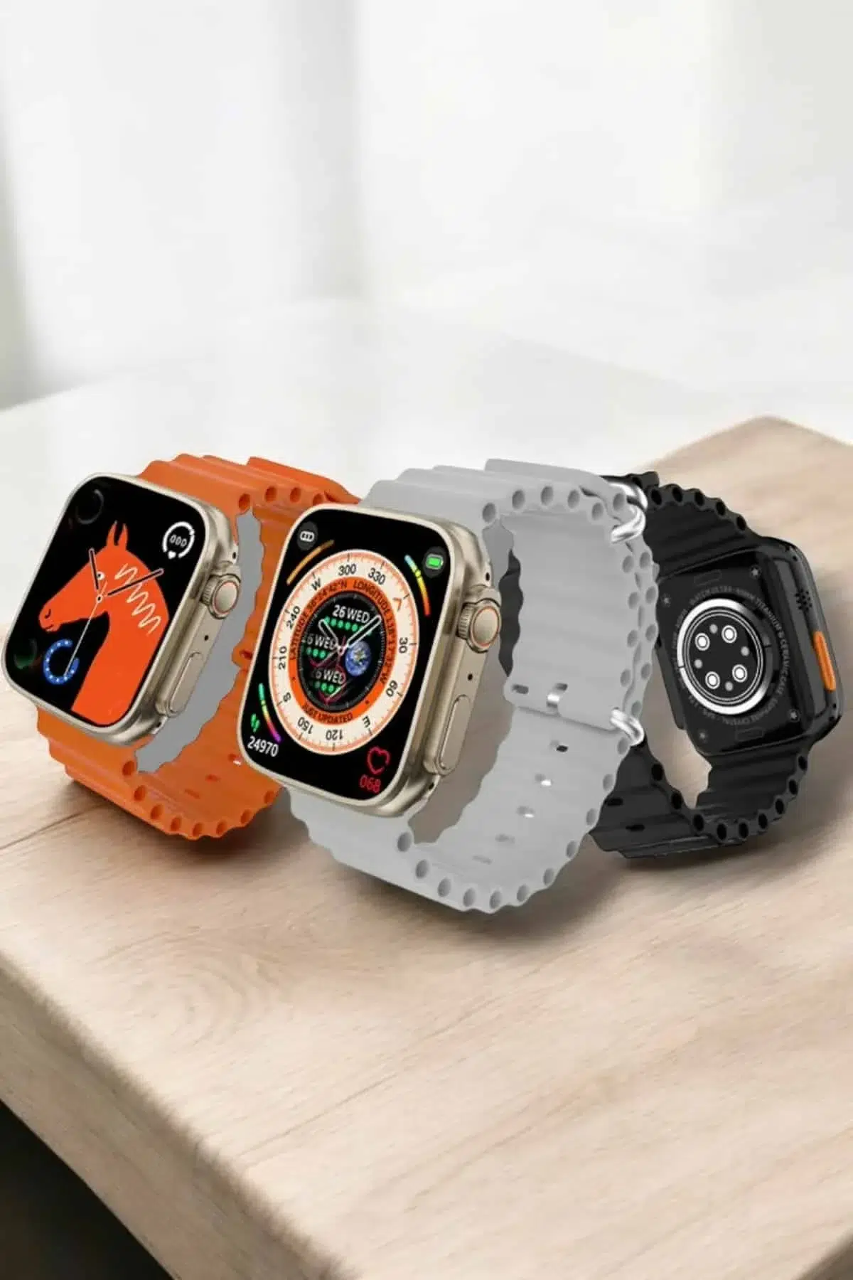 Spor ve sağlık meraklıları için özel olarak geliştirilen bu akıllı saat, hayatınızı kolaylaştırmak için birçok özelliği bir araya getiriyor. Kalp atış hızı, kan basıncı ve kandaki oksijen oranı ölçme fonksiyonları ile sağlık durumunuzu her an kontrol altında tutabilirsiniz. Adımsayar, kalori tüketimi takibi, egzersiz mesafesi kaydı ve uyku izleme özellikleriyle aktivitelerinizi detaylı şekilde analiz edin.Bluetooth bağlantısı sayesinde telefonunuzla uyum içinde çalışan bu saat, müzik dinleme, çağrı hatırlatma, arama kaydı, rehber erişimi, iki yönlü arama ve telefon bulma gibi özelliklerle donatılmıştır. Titreşimli çalar saat, kronometre, hava durumu takibi ve sesli asistan fonksiyonlarıyla günlük ihtiyaçlarınıza hızlı çözümler sunar.Tam dokunmatik ekran, kablosuz şarj desteği ve değiştirilebilir temalar, bu saati hem kullanışlı hem de kişiselleştirilebilir bir cihaz haline getiriyor. Sağlık takibi ve şık bir aksesuar arayan herkes için ideal bir seçim!