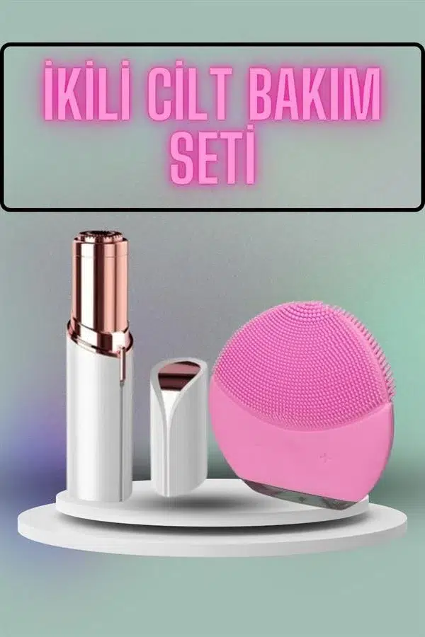 Kaş Bıyık Ve Yüz Epilasyon Aleti Ve Titreşimli Yüz Temizleme Masaj Aleti İkili Set