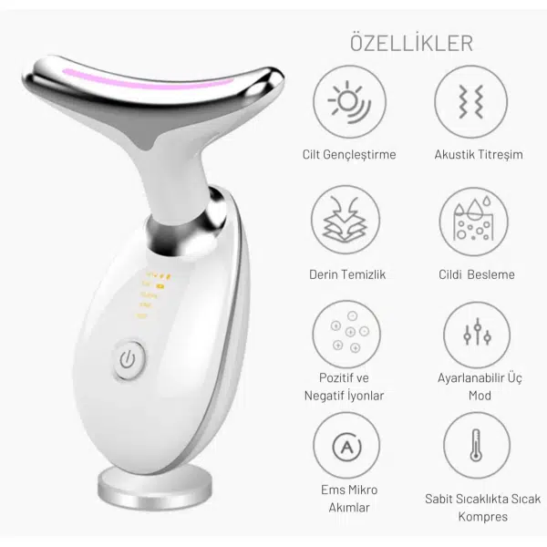 KIRIŞIKLIK GİDERİCİ MASAJ CİHAZIÜrün ÖzellikleriIşık terapisi, farklı dalga boylarındaki ışık terapileri ile cilt yenileme ve kırışıklık azaltma için kullanılır. Titreşim özelliği, kan dolaşımını artırarak cildi sıkılaştırır ve toksinlerin atılmasını destekler. Isıtma özelliği, cilt gözeneklerini açarak ürün emilimini artırır ve rahatlama sağlar. Yüz, boyun ve diğer bölgelerde kolay kullanım için ideal boyutta ve hafif tasarıma sahiptir. USB şarj edilebilir özelliği ile taşınabilir ve her yerde kullanılabilir. Lifting (cilt sıkılaştırma), göz çevresi bakımı ve temizlik modları ile kapsamlı bir bakım sağlar. Bir cihazla birçok cilt problemini hedefler.Paket İçeriği1 Adet Kırışıklık Giderici Masaj Cihazı
