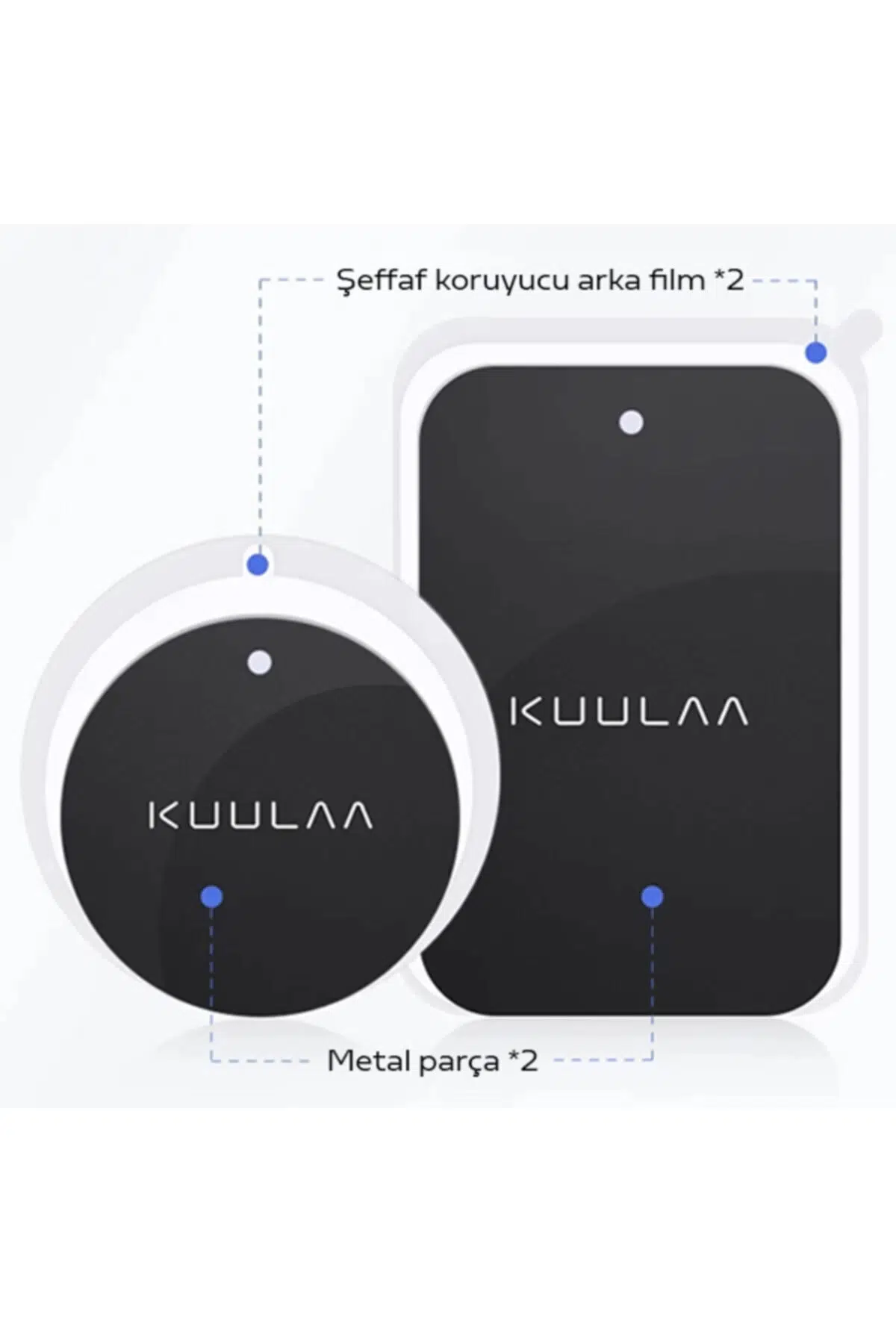KUULAA Magnetic-Mıknatıslı Telefon Tutucular için Metal Plaka Seti SİYAH. KUULAA Magnetic-Mıknatıslı Telefon Tutucular için Metal Plaka SetiKUULAA Magnetic-Mıknatıslı Telefon Tutucular için Metal Plaka Seti Paket içerisinde iki adet metal plaka bulunmaktadır. Metal plakaları telefonunuzun arkasına yapıştırarak manyetik telefon tutucularla kolayca kullanabilirsiniz. Cihazınızı güçlü şekilde tutar ve dayanıklıdır. 0.4 incelikte tasarıma sahiptir. Yuvarlak metal plaka: 40*40mm Dikdörtgen metal plaka: 65*45mmPaket içeriği: 1*Dikdörtgen Metal Plaka 1*Yuvarlak Metal Plaka