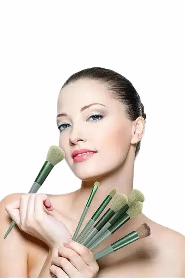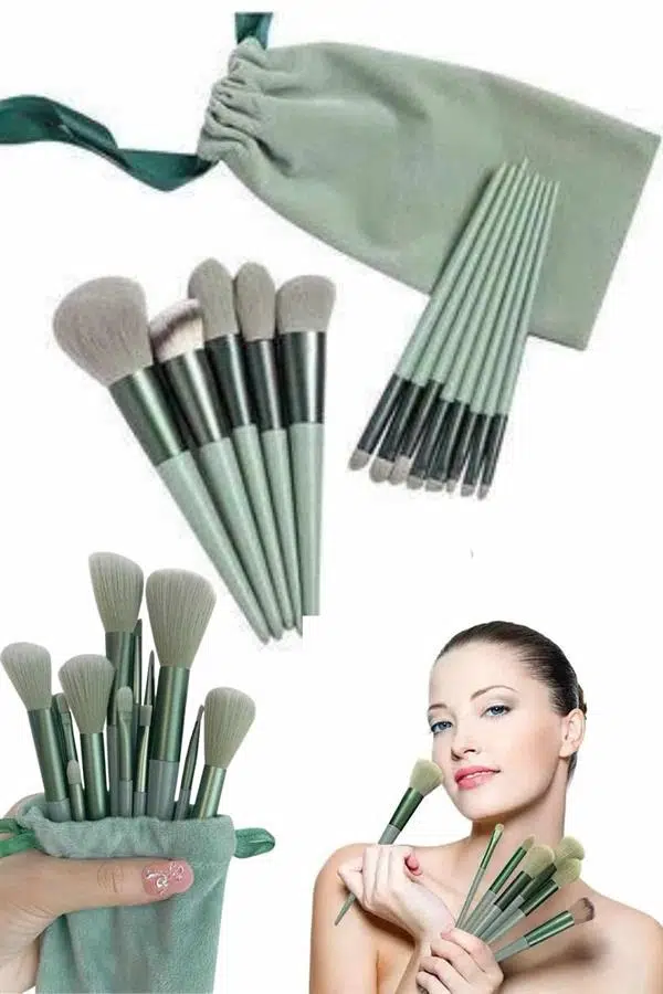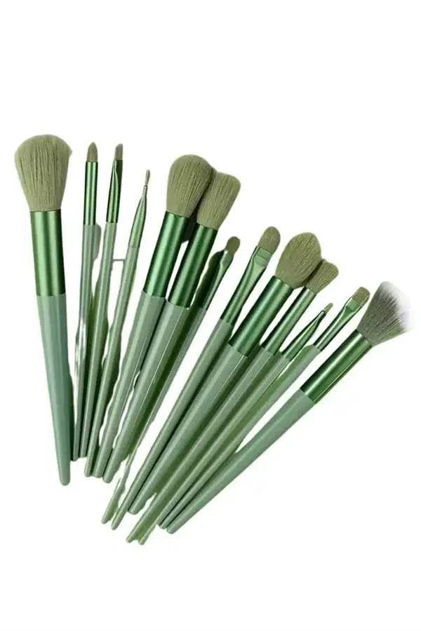 EtiketlerMakyaj Fırça Seti Yeşil 13 Parça Fondöten Fırçası Allık Fırçası Far Fırçası