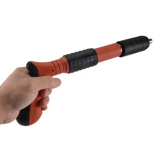 MANUEL ÇİVİ TABANCASIÜrün Özellikleri Manuel Çivi Tabancası, genellikle ahşap, çelik veya beton yüzeylere çivi, dübel veya perçin yerleştirmek için kullanılan pratik bir el aletidir. Ürünün üst kısmında yer alan siyah ayar halkası sayesinde 3 farklı kuvvet seviyesi (vites) seçilebilir. Bu, yüzeyin sertliğine göre sabitleme işlemini optimize eder:1. Vites: Daha yumuşak yüzeyler ve küçük çiviler için uygundur.2. Vites: Orta sertlikte yüzeylerde kullanılabilir.3. Vites: Sert yüzeyler (beton/metal) için yüksek darbe kuvveti sağlar. Kavrama alanı kaymaz ve ele tam oturur, uzun süreli kullanımda bile rahatlık sunar. Ürün, yaylı sistemle çalışır ve perçinleme esnasında yüksek ses çıkarmadan işlem yapılmasına imkân tanır. Aletin ucu, tam isabetli çalışmak üzere tasarlanmıştır, bu sayede çiviler düzgün şekilde yüzeye yerleştirilir. Paket İçeriği 1 Adet Manuel Çivi Tabancası