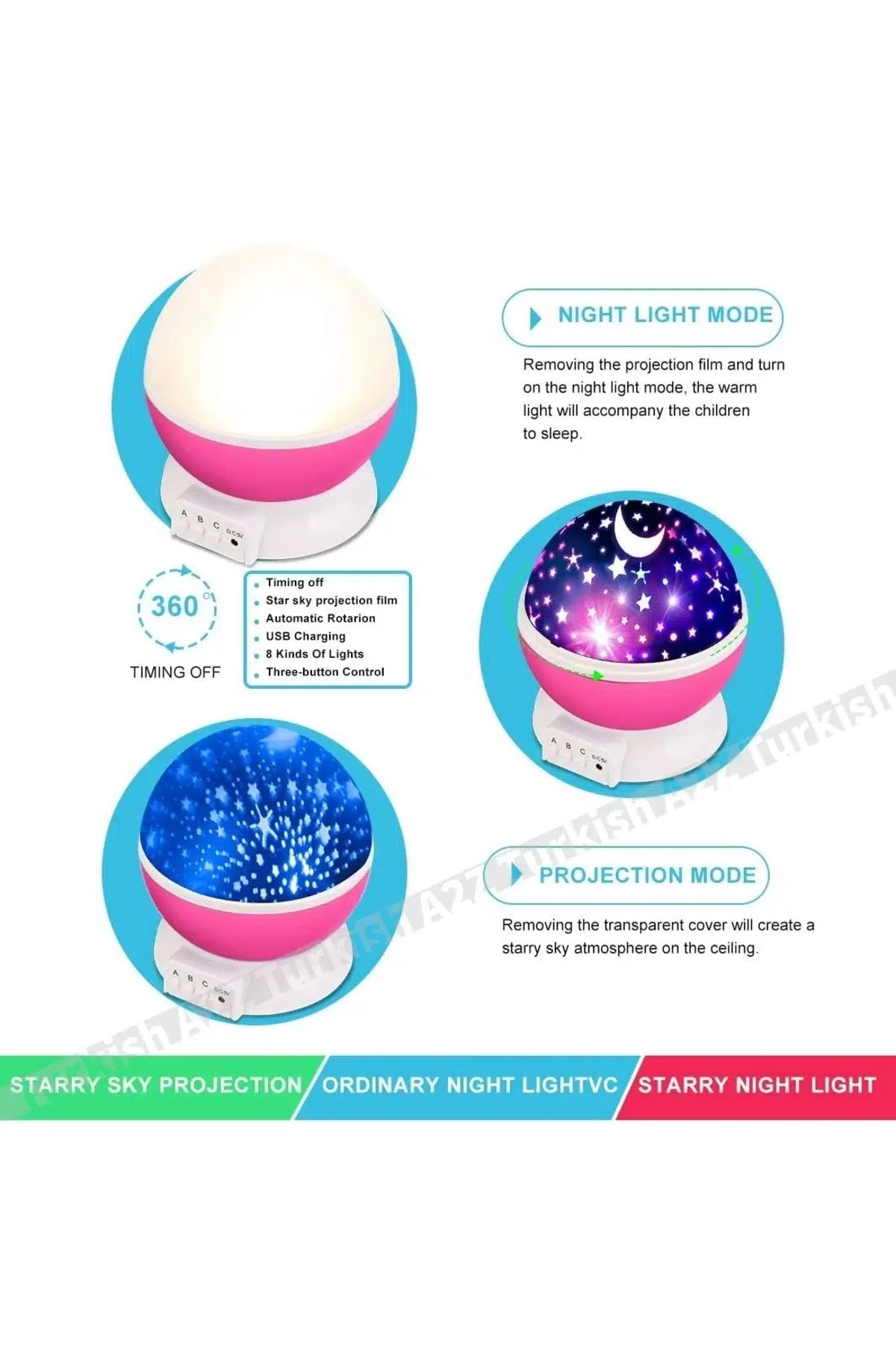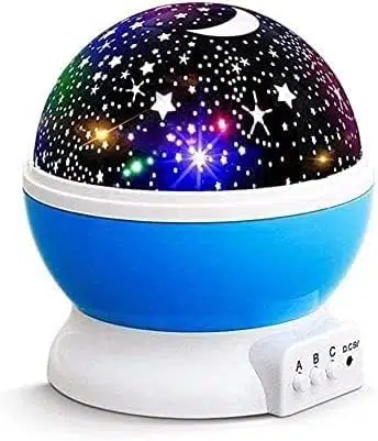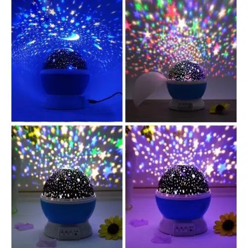 EtiketlerMavi Dönen Renkli Ay Yıldızlı Gökyüzü Yansıtmalı Projeksiyon Gece Lambası Çocuk Bebek Parti Odası