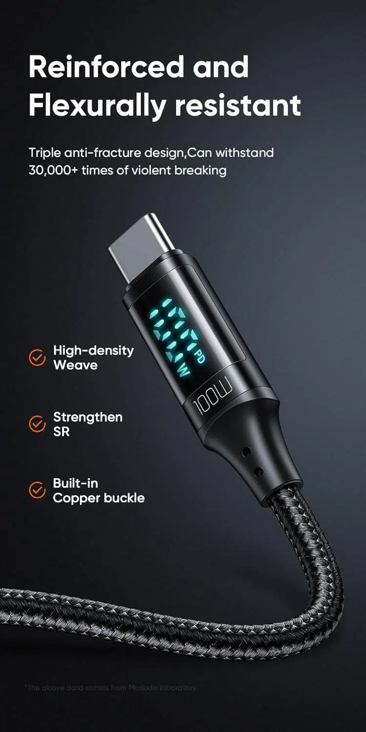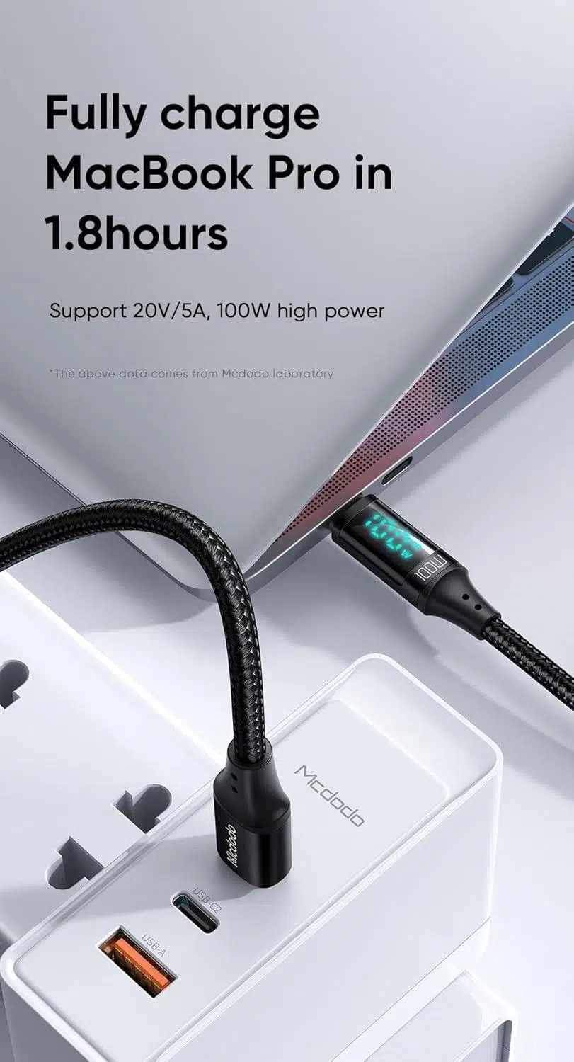 Mcdodo CA-1100 100W Type-C To Type-C Dijital Ekran Sarj Kablosu 1.2M