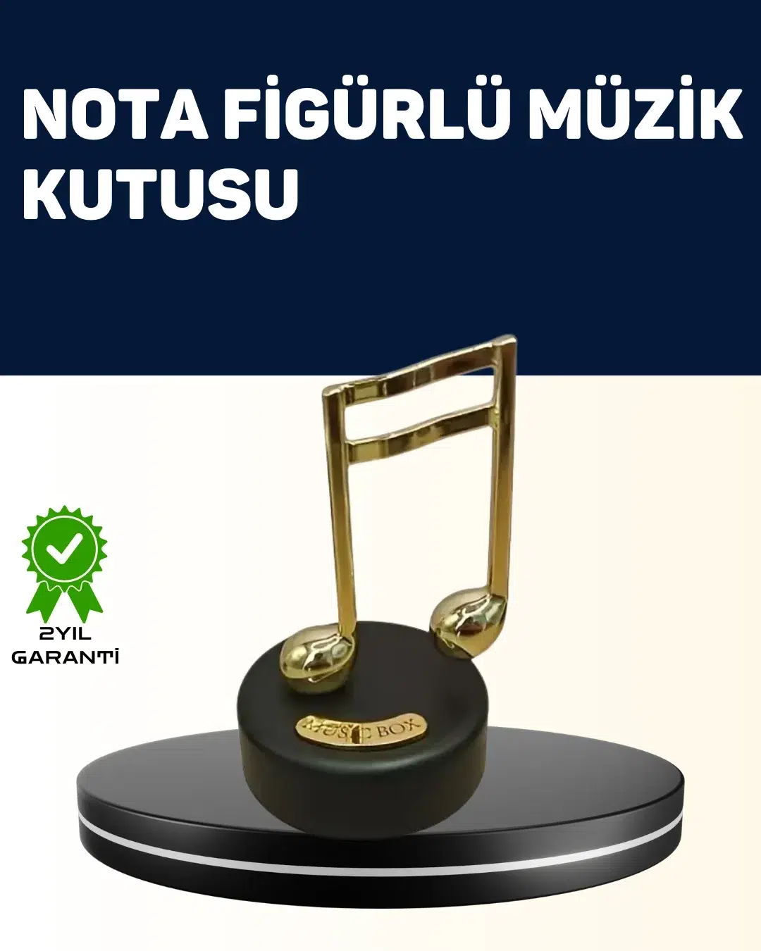 Altın nota figürlü müzik kutusu, melodisi ve görünümüyle ortamda zarif bir atmosfer yaratan dekoratif bir tasarımdır. Nota sembolünün akıcı kıvrımları, altın tonlarının ışıltısı ile birleştiğinde es bir sanat objesi ortaya çıkar. Bu özel tasarım hem müziğin enerjisini hem de dekoratif sanatın zarafetini yansıtır.Melodi çalmaya başladığında ortamda huzur veren yumuşak bir hava oluşur. Bu açıdan ürün hem duygusal bağ kurmaya yardımcı olur hem de dekoratif bir tamamlayıcı görevi görür. Evlerde, ofislerde, müzik odalarında ve okuma köşelerinde rahatlıkla tercih edilebilir.Ürün, özellikle müzik temasını seven kişilere hitap eder. Nota sembolü, müziğin evrensel dilini temsil ettiği için bulunduğu ortama anlam katan güçlü bir dekoratif formdur. Altın rengin parlaklığı, ürünün sergilendiği alanda dikkat çekici bir vurgu oluşturur.Kullanıcı kitlesi oldukça geniştir. 3 yaş ve üzeri bireyler için uygun olan ürün, çocuk odalarında sakinleştirici bir obje olarak tercih edilebilir. Yetişkin odalarında ise es bir dekoratif aksesuardır.Hediyelik olarak da ideal bir seçenektir. Müzik öğretmenleri, konservatuvar öğrencileri, nota sembollerine ilgi duyanlar veya dekoratif objeler toplamayı sevenler için anlamlı bir armağan olabilir. Kutu tasarımı hediye sürecini daha şık bir hale getirir.Altın nota figürlü müzik kutusu, hem melodisi hem es duruşuyla alanlara sıcak ve romantik bir hava katar. Müzik ruhunu yaşam alanlarına taşımak isteyen herkes için şık ve duygu yüklü bir tercihtir.