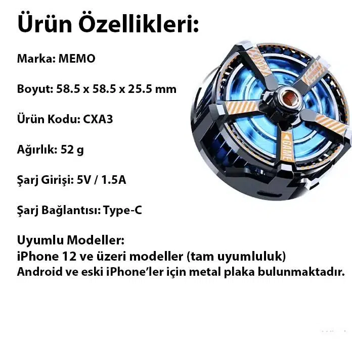 Memo CX-A3 Manyetik Cep Telefon Soğutucu Fan – Radyatörlü Buz Mıknatısı
