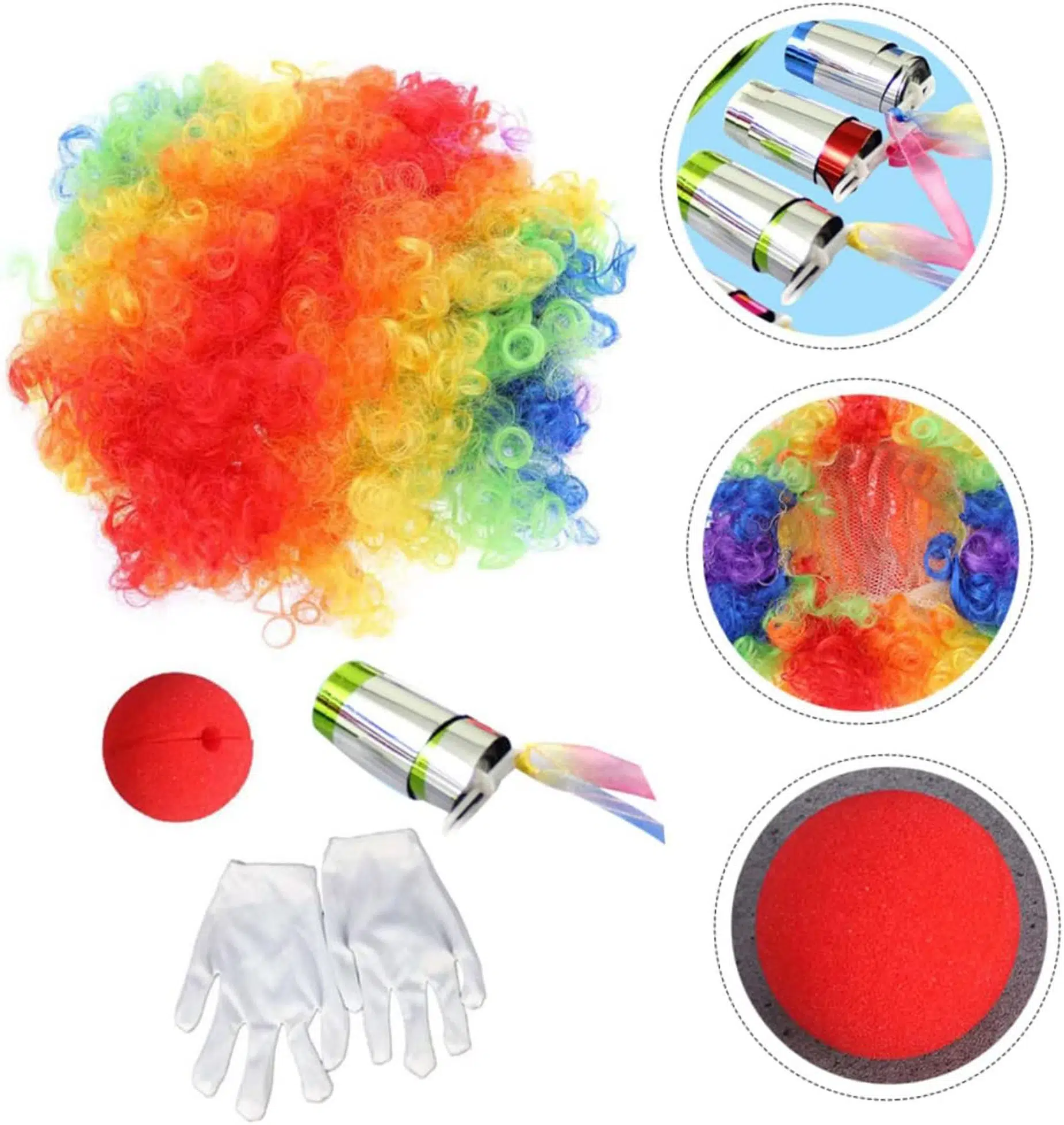 EtiketlerPalyaço Saç, Burun, Eldiven, Baston Seti 4'lü