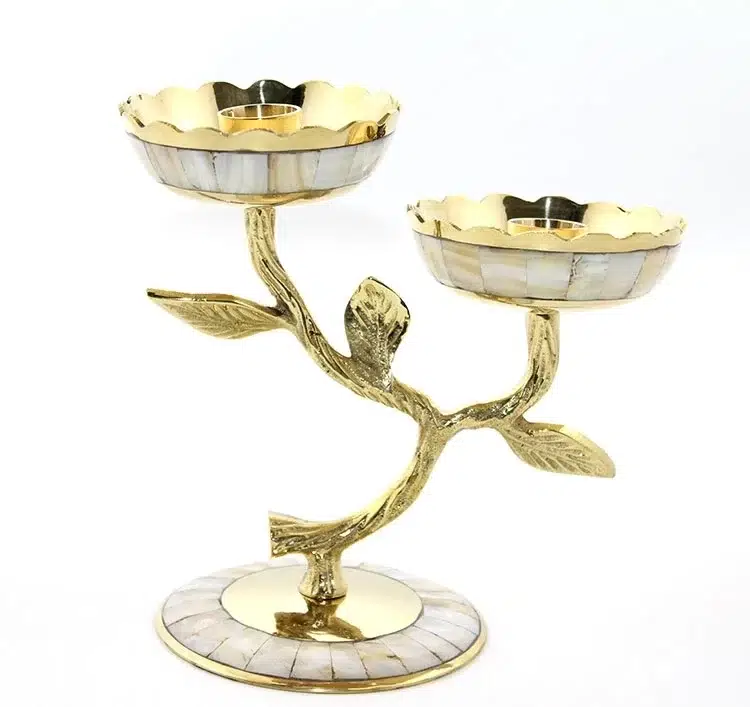 Pirinç Ve Sedef Karışımdan Üretilmiştir. Pirinç Sedefli 2'Li Şamdan 15*17 Cm