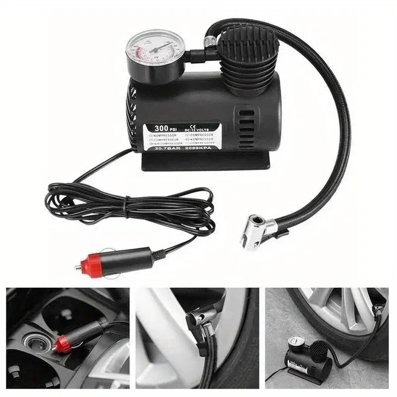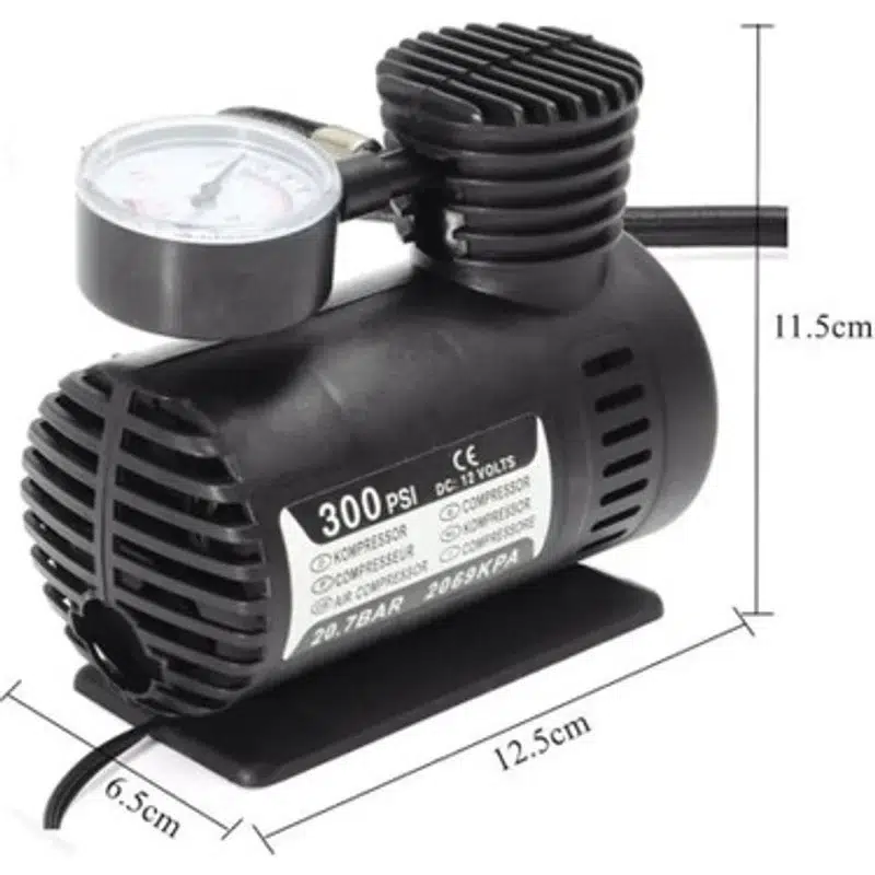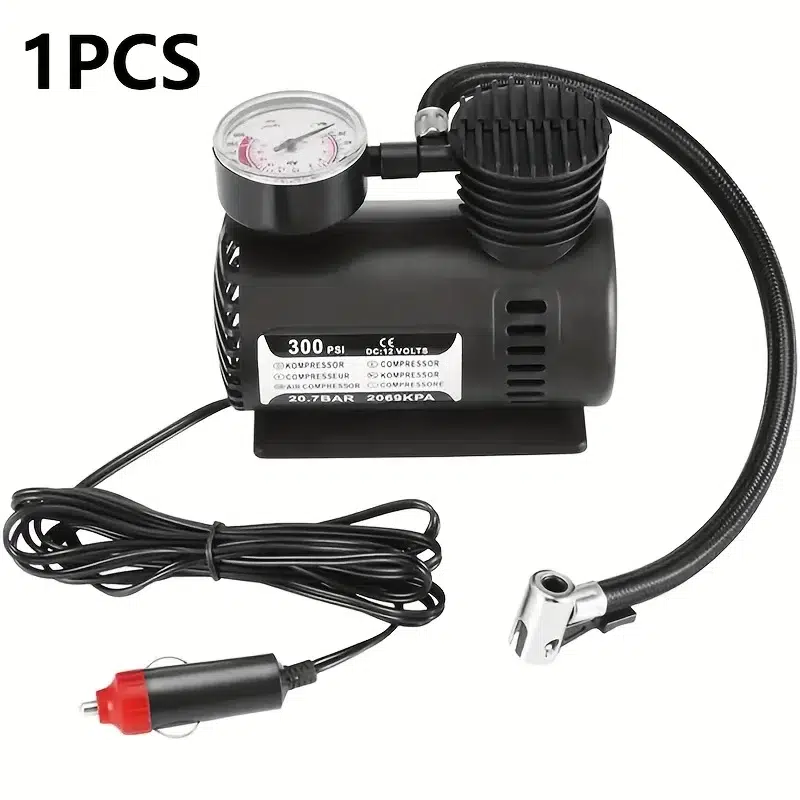 Plastik Gövdeli Siyah Mini Hava Kompresörü, otomobiliniz için ideal bir aksesuardır. Bu kompakt hava kompresörü, acil durumlarda lastik basıncınızı hızla ve kolayca kontrol etmenize yardımcı olur.
