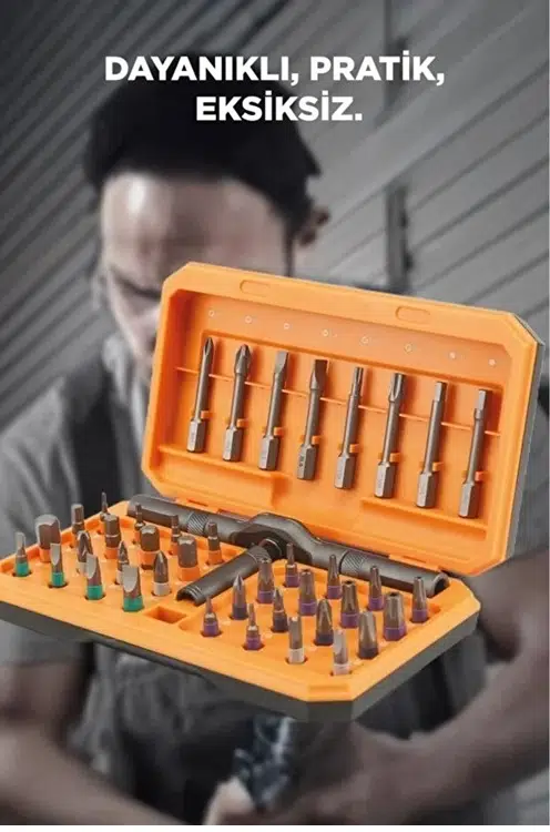 Set içerisinde farklı boyut ve tiplerde toplam 40 adet uç ve bir adet kol bulunmaktadır.