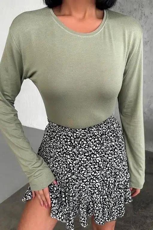 -Şimdi, gardırobunuzun olmazsa olmaz parçalarından biri olacak bu uzun kollu bisiklet yaka likralı hakî viskon penye body'yi hemen satın alın ve her zaman rahat ve şık bir görünüme sahip olun!