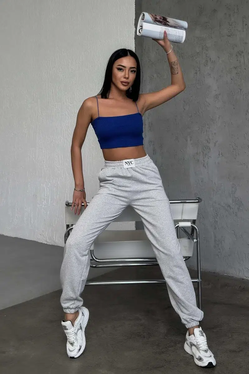 -Gri rengi, zamansız ve çok yönlüdür, dolayısıyla farklı üst giysilerle kolayca kombinlenebilir. Paçası lastikli tasarımı, ayarlanabilir bir uyum sağlar ve hareket özgürlüğü sunar. Bu özellik, egzersiz yaparken veya günlük aktivitelerinizde size konfor sağlar.